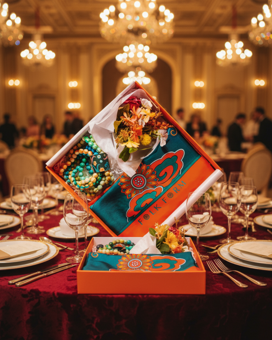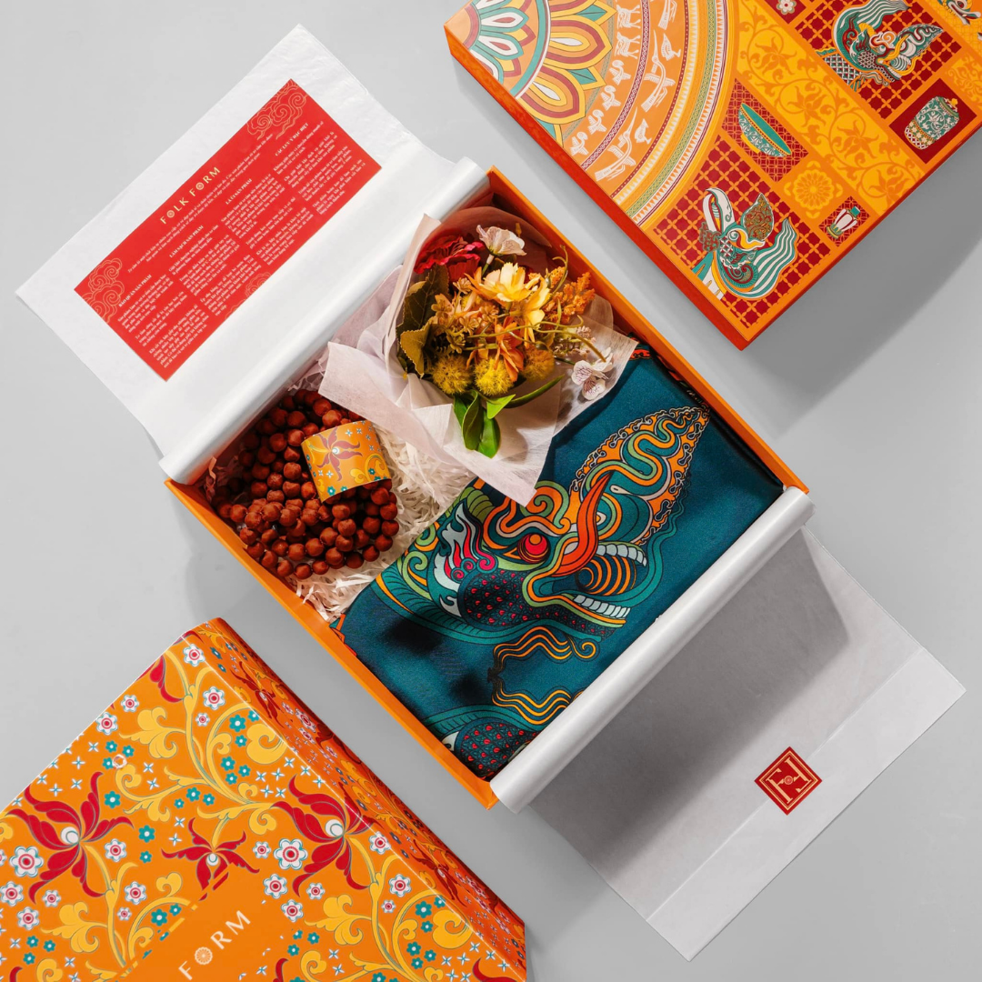 Tất cả hoà quyện, tạo nên một nghi thức trao quà sang trọng – nơi mỗi chi tiết đều phản chiếu tinh thần Folk Form: tôn vinh di sản, nâng niu từng khoảnh khắc, và biến món quà trở thành ký ức khó quên.