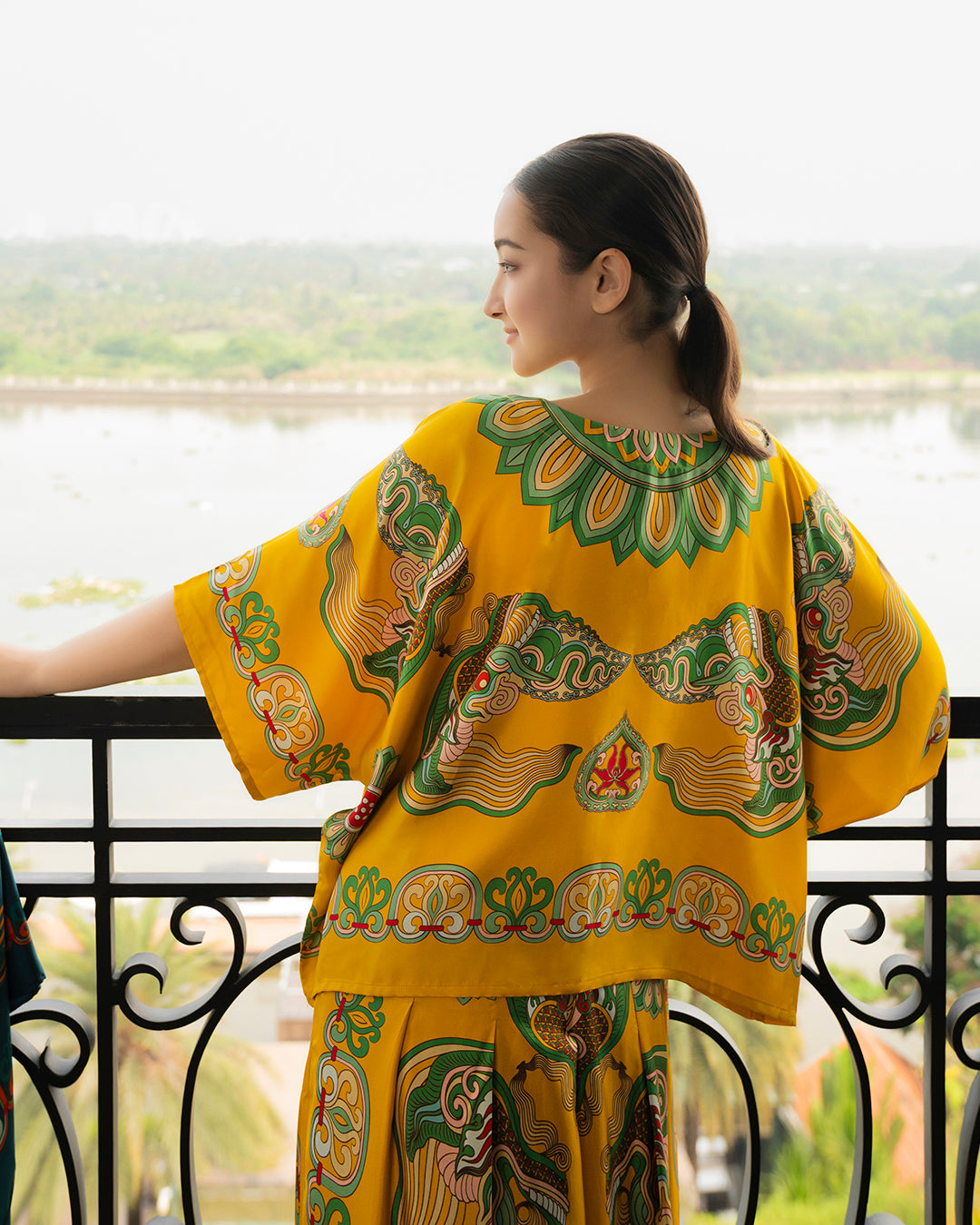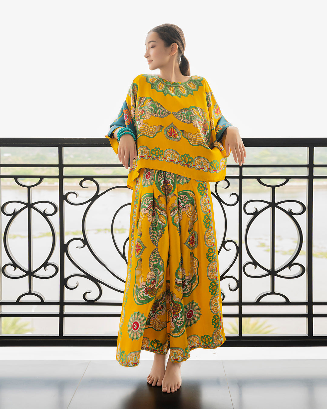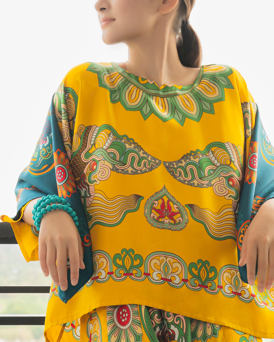 Áo Cánh Dơi Lụa Thập Niên 1940 gói trọn nét duyên dáng hoài cổ với một phong thái đầy tự do. Được dệt nên từ lụa cao cấp và sống động với những họa tiết đậm màu văn hóa, sản phẩm là bản giao hưởng của vẻ đẹp đài các và tinh thần phóng khoáng. Hãy đắm mình trong một tuyệt tác tôn vinh di sản, nơi quá khứ vàng son và nhịp sống hiện đại cùng hòa quyện.