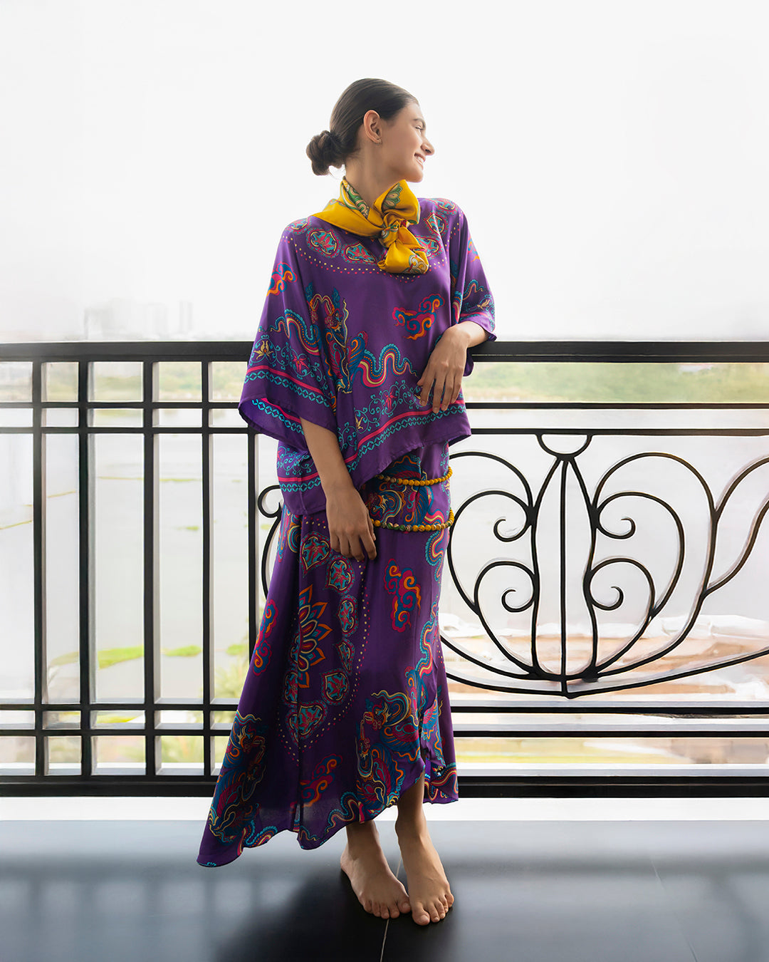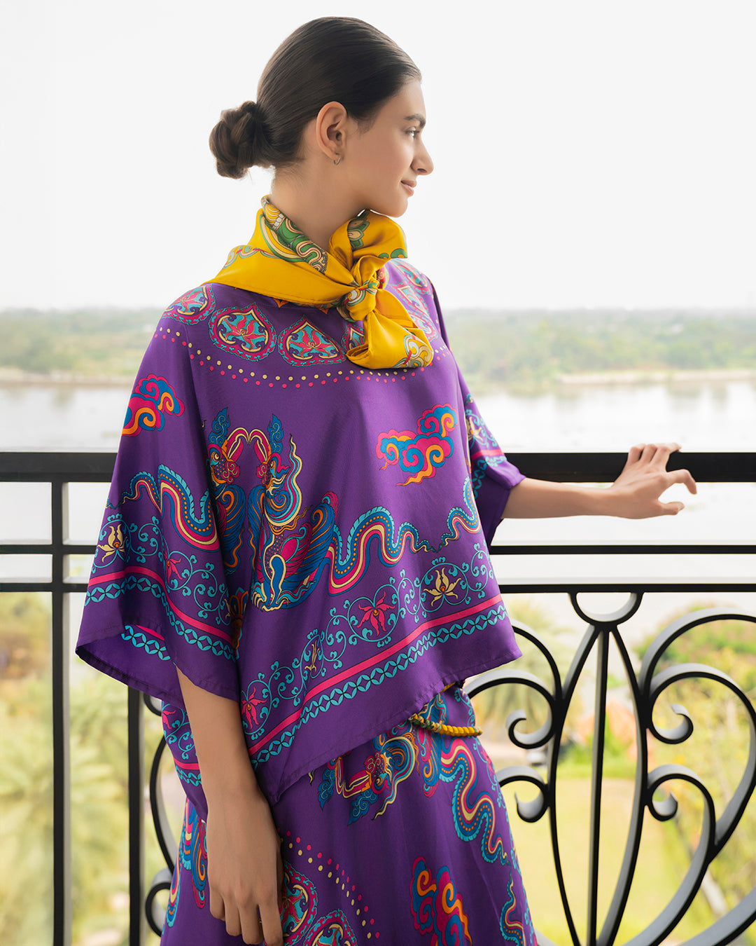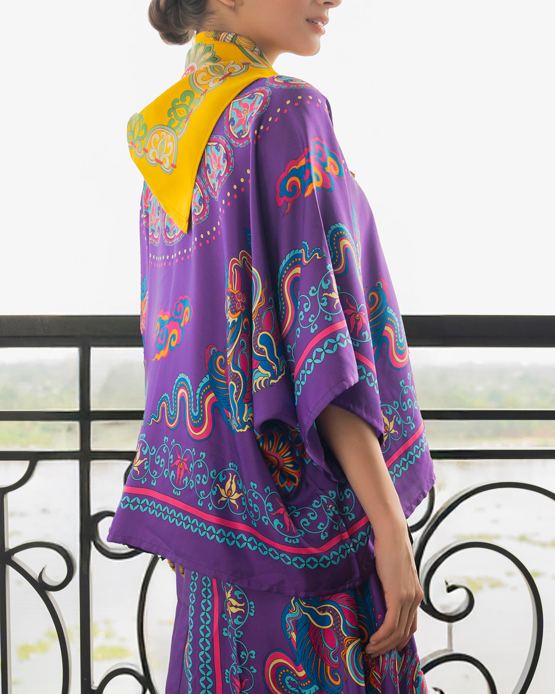 Áo Cánh Dơi Lụa Thập Niên 1940 gói trọn nét duyên dáng hoài cổ với một phong thái đầy tự do. Được dệt nên từ lụa cao cấp và sống động với những họa tiết đậm màu văn hóa, sản phẩm là bản giao hưởng của vẻ đẹp đài các và tinh thần phóng khoáng. Hãy đắm mình trong một tuyệt tác tôn vinh di sản, nơi quá khứ vàng son và nhịp sống hiện đại cùng hòa quyện.