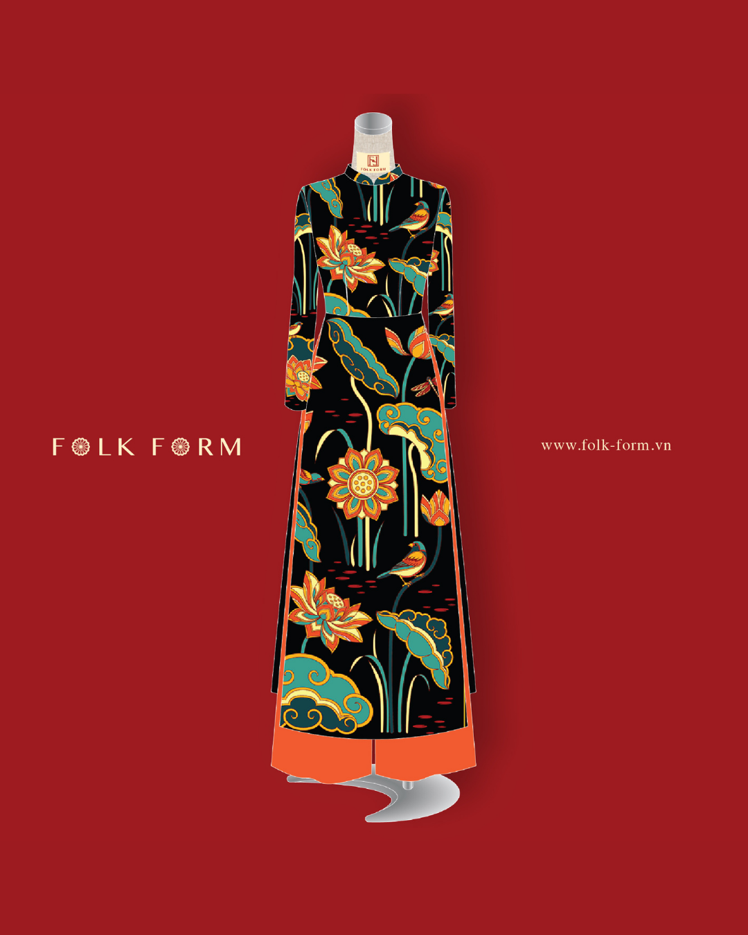 Áo Dài Truyền Thống / Họa tiết Cố Đô Liên Hoạ Đen & Da Cam