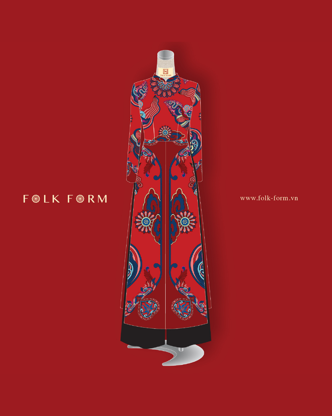 Áo Dài Truyền Thống / Họa tiết Hương Vân Long Mộng Đỏ