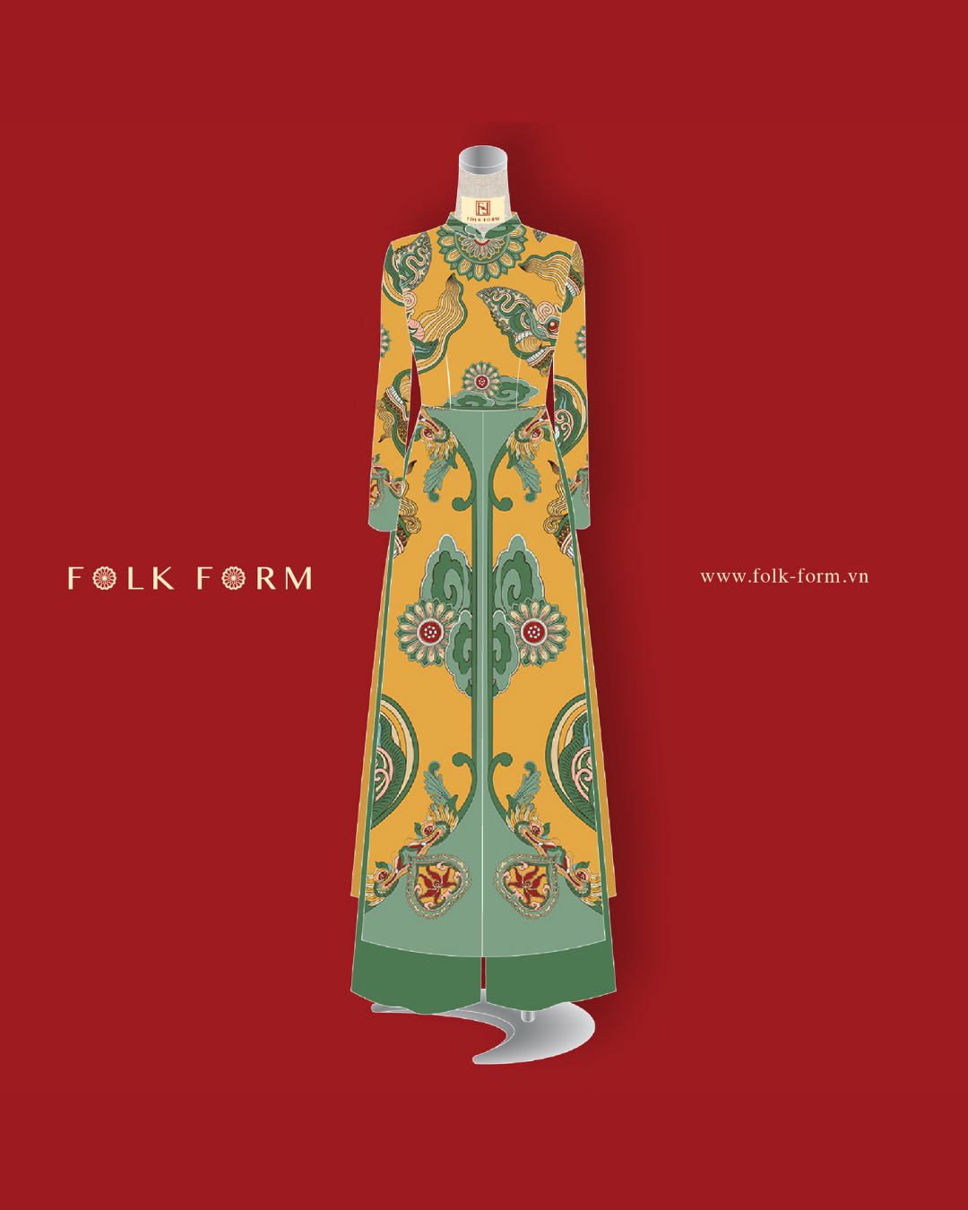 Áo Dài Truyền Thống / Họa tiết Hương Vân Long Mộng Xanh Lá & Vàng