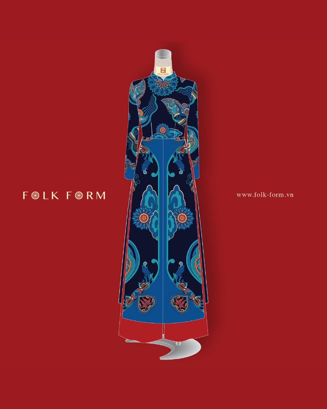 Áo Dài Truyền Thống / Họa tiết Hương Vân Long Mộng Xanh Lam Đậm