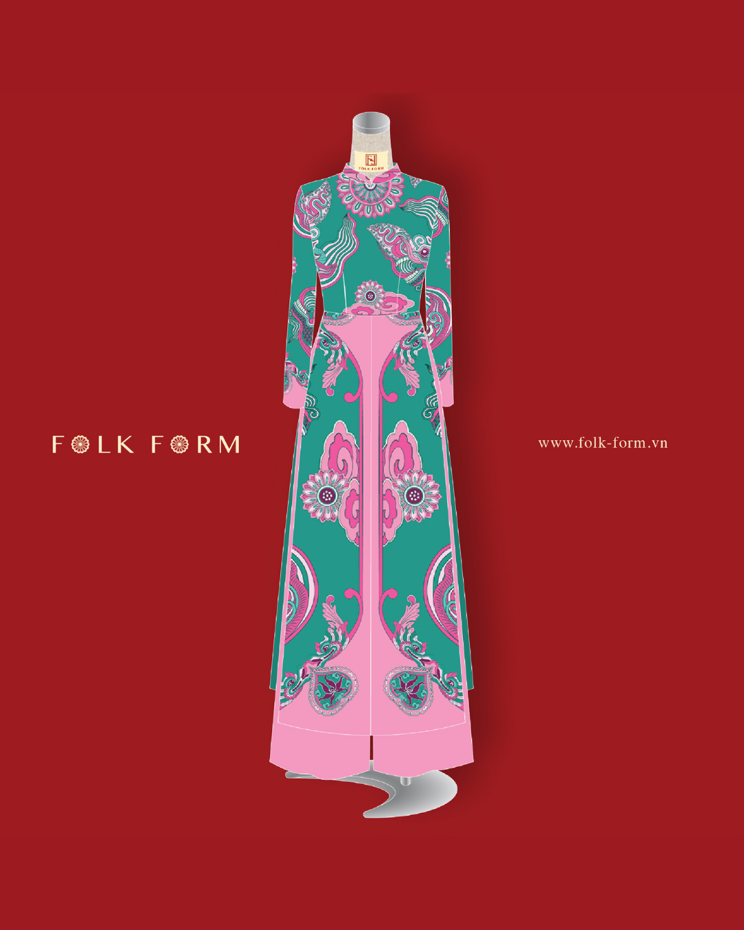 Áo Dài Truyền Thống / Họa tiết Hương Vân Long Mộng Xanh Ngọc & Hồng