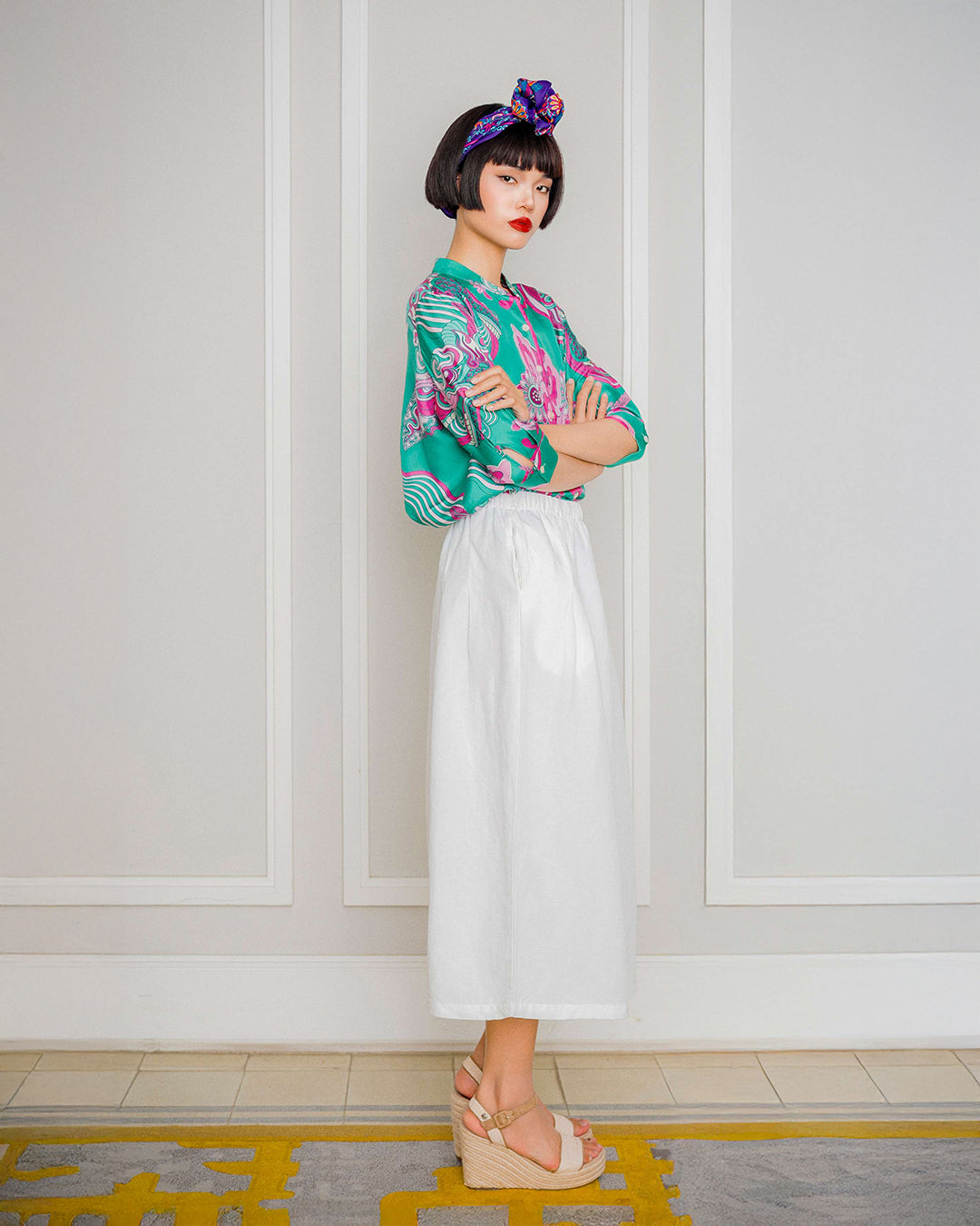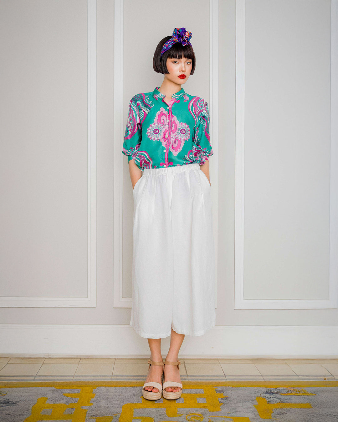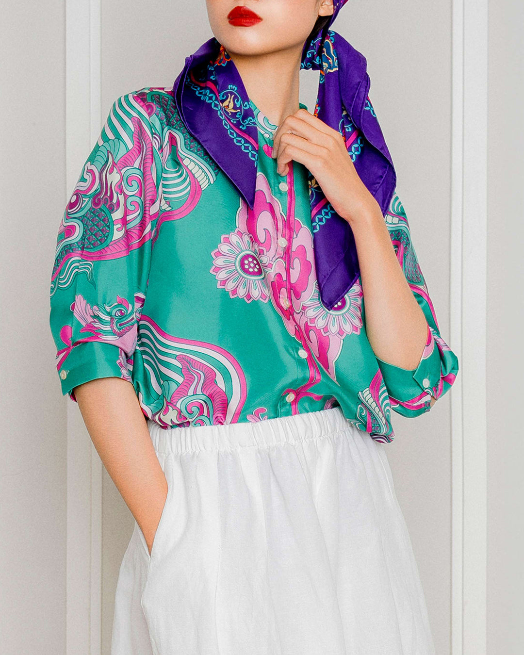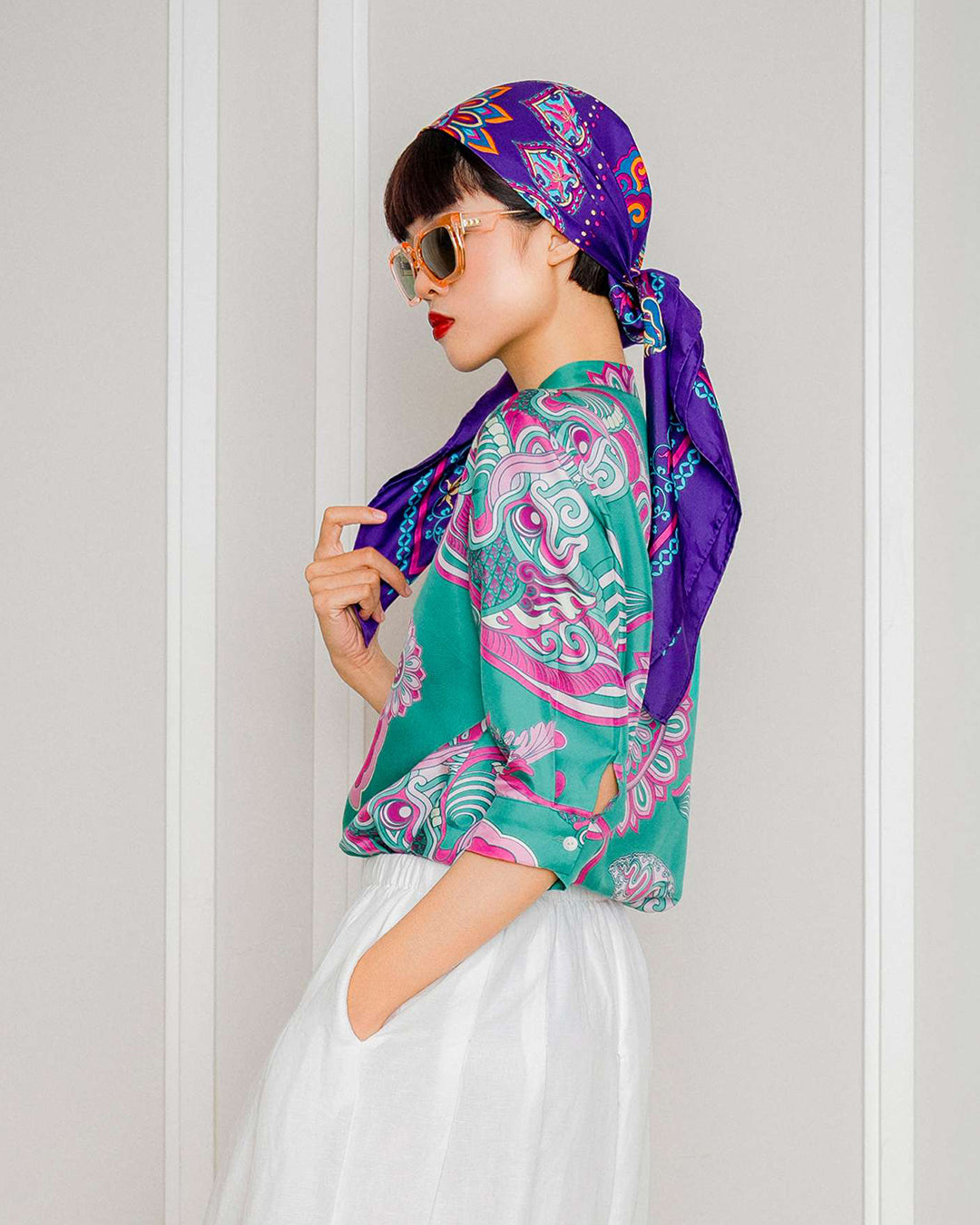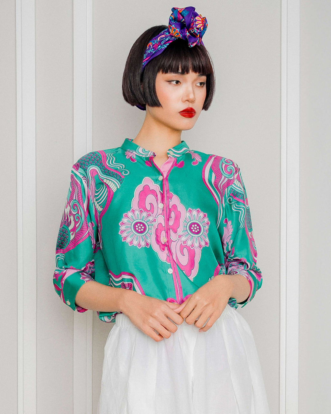Áo Sơ Mi Lụa Giải Phóng 1925 xanh hồng tái hiện sức sống văn hóa với một tinh thần táo bạo. Được chế tác từ lụa mỏng nhẹ và tô điểm bởi họa tiết văn hóa sống động, sản phẩm khơi gợi sự tự do trong nghệ thuật và vẻ tự tin tỏa sáng. Hãy tự hào khoác lên mình di sản giao thoa cùng niềm vui hiện đại.