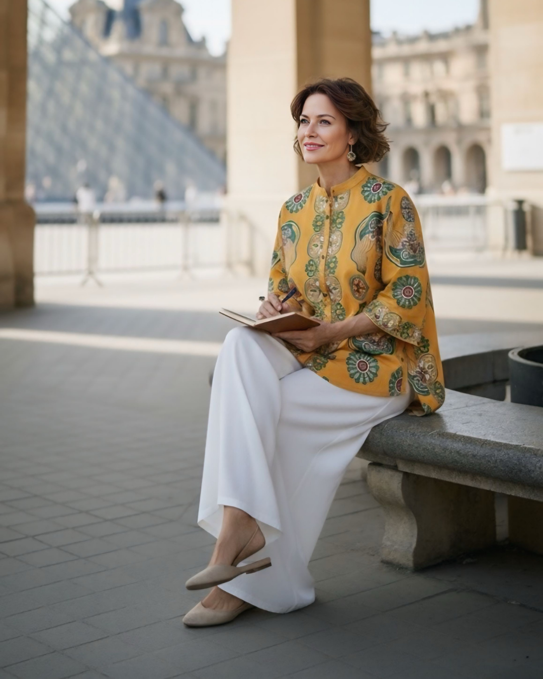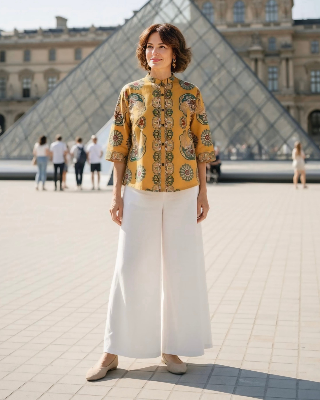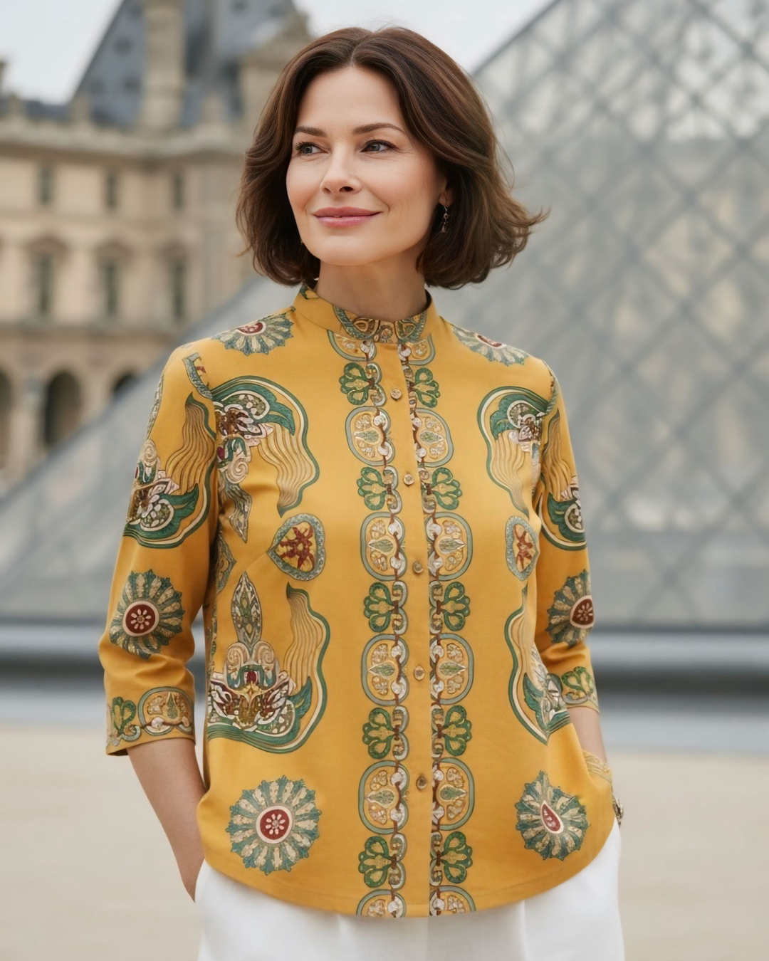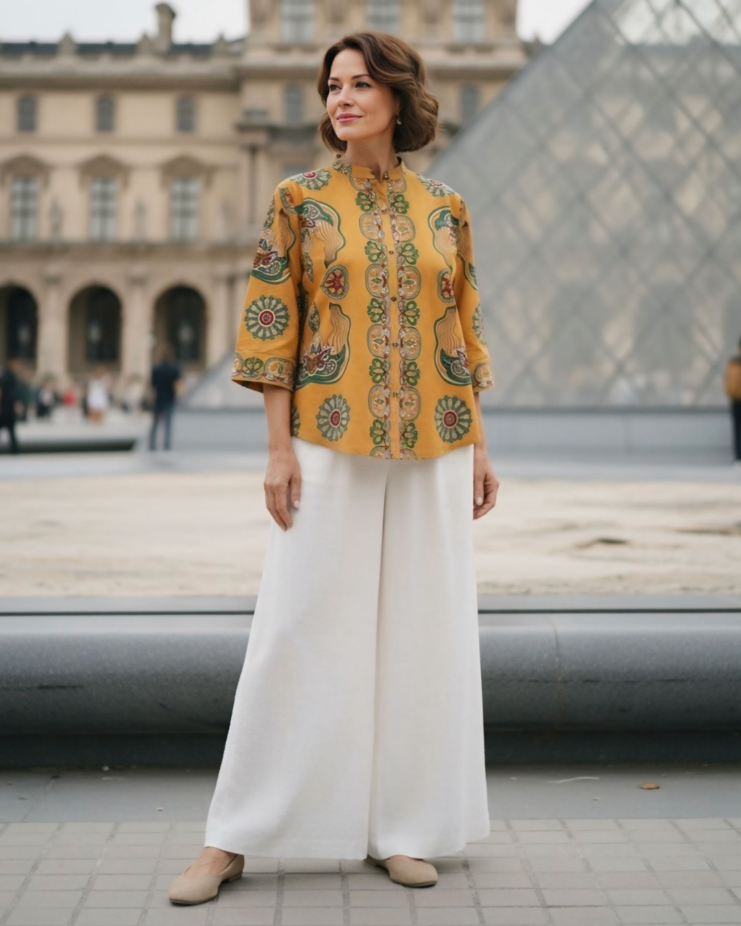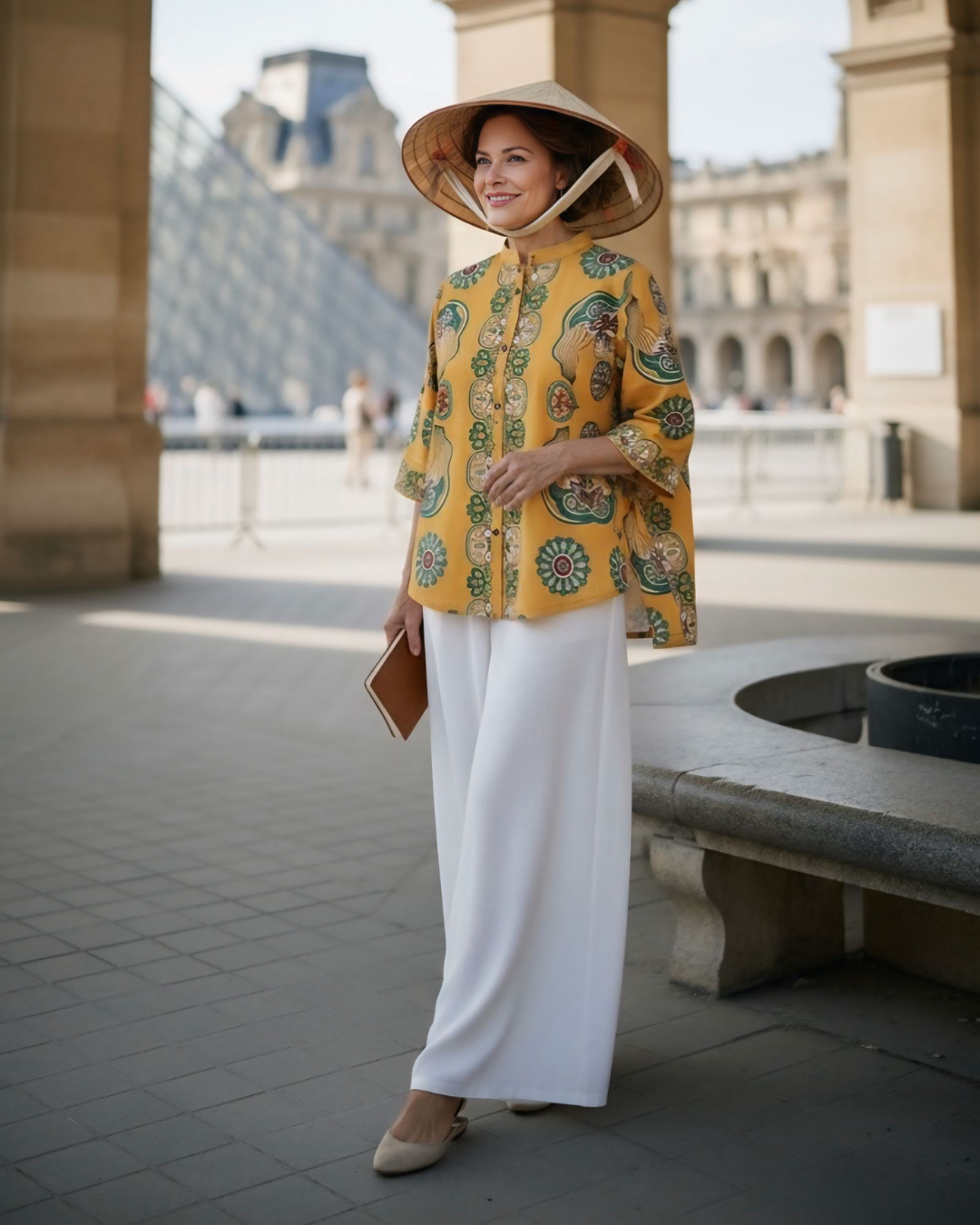 Áo Sơ Mi Lụa Giải Phóng 1925 vàng tái hiện sức sống văn hóa với một tinh thần táo bạo. Được chế tác từ lụa mỏng nhẹ và tô điểm bởi họa tiết văn hóa sống động, sản phẩm khơi gợi sự tự do trong nghệ thuật và vẻ tự tin tỏa sáng. Hãy tự hào khoác lên mình di sản giao thoa cùng niềm vui hiện đại.