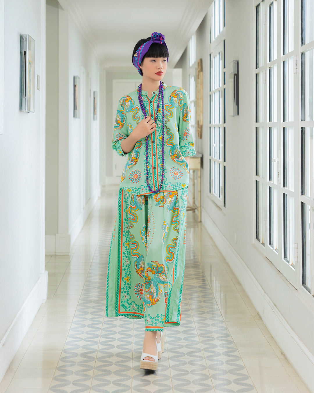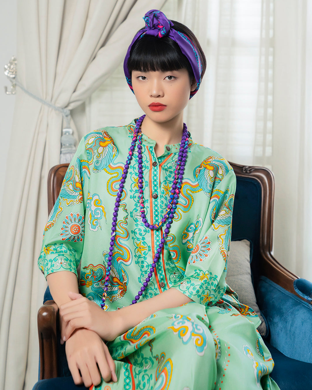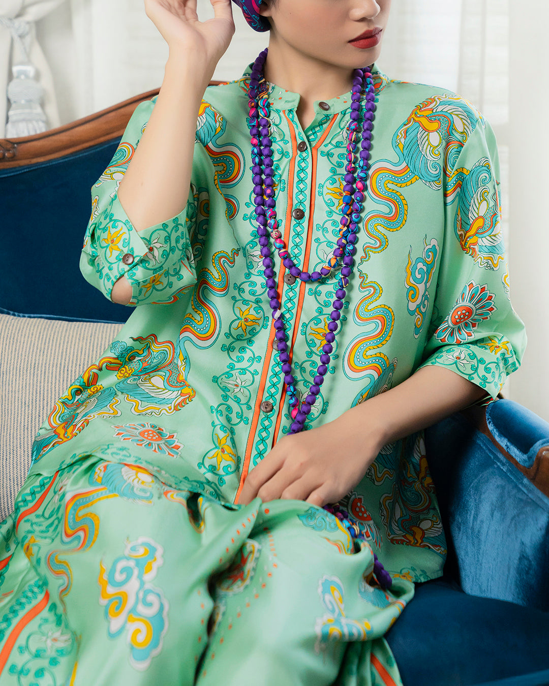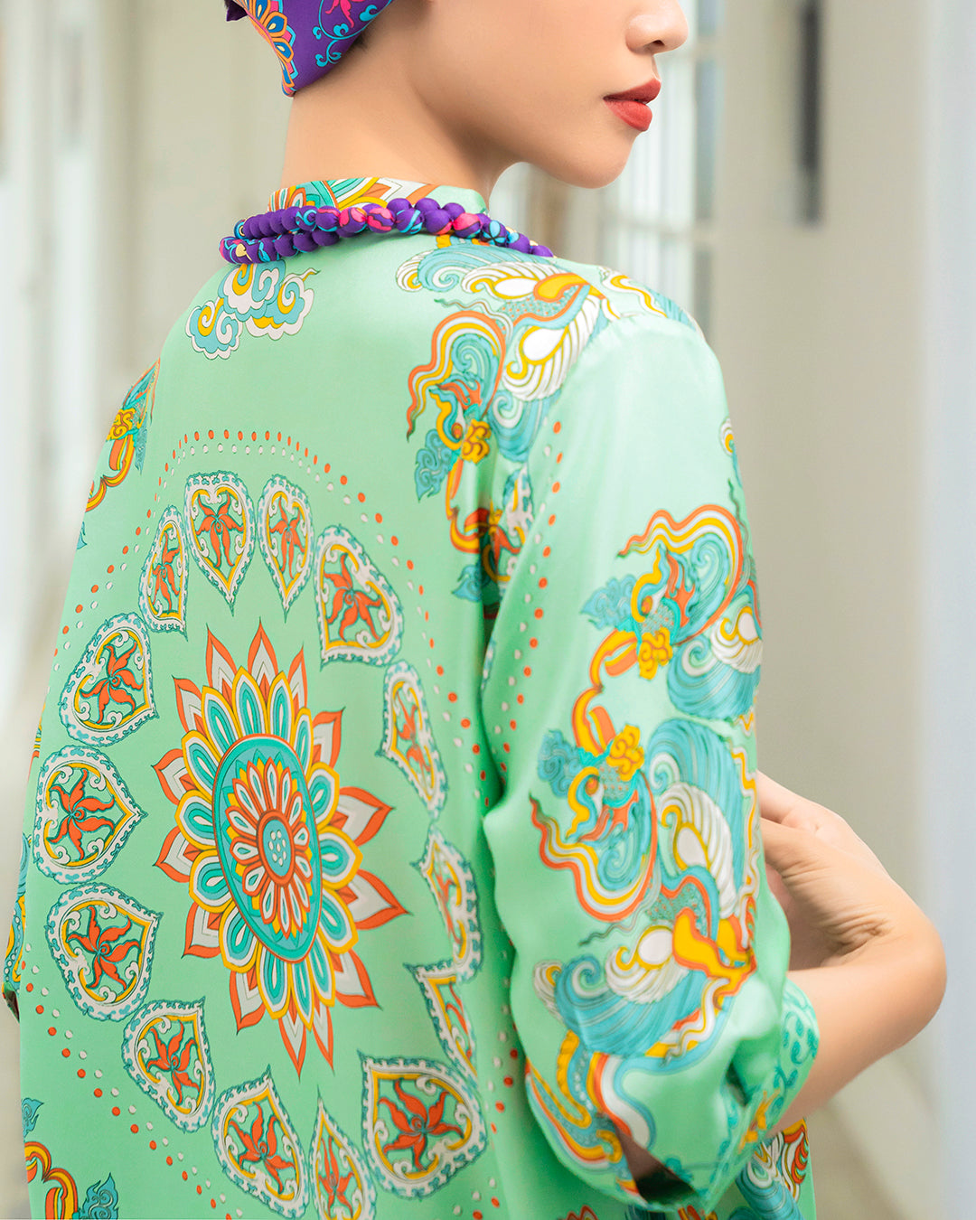 Áo Sơ Mi Lụa Giải Phóng 1925 xanh lá nhạt tái hiện sức sống văn hóa với một tinh thần táo bạo. Được chế tác từ lụa mỏng nhẹ và tô điểm bởi họa tiết văn hóa sống động, sản phẩm khơi gợi sự tự do trong nghệ thuật và vẻ tự tin tỏa sáng. Hãy tự hào khoác lên mình di sản giao thoa cùng niềm vui hiện đại.