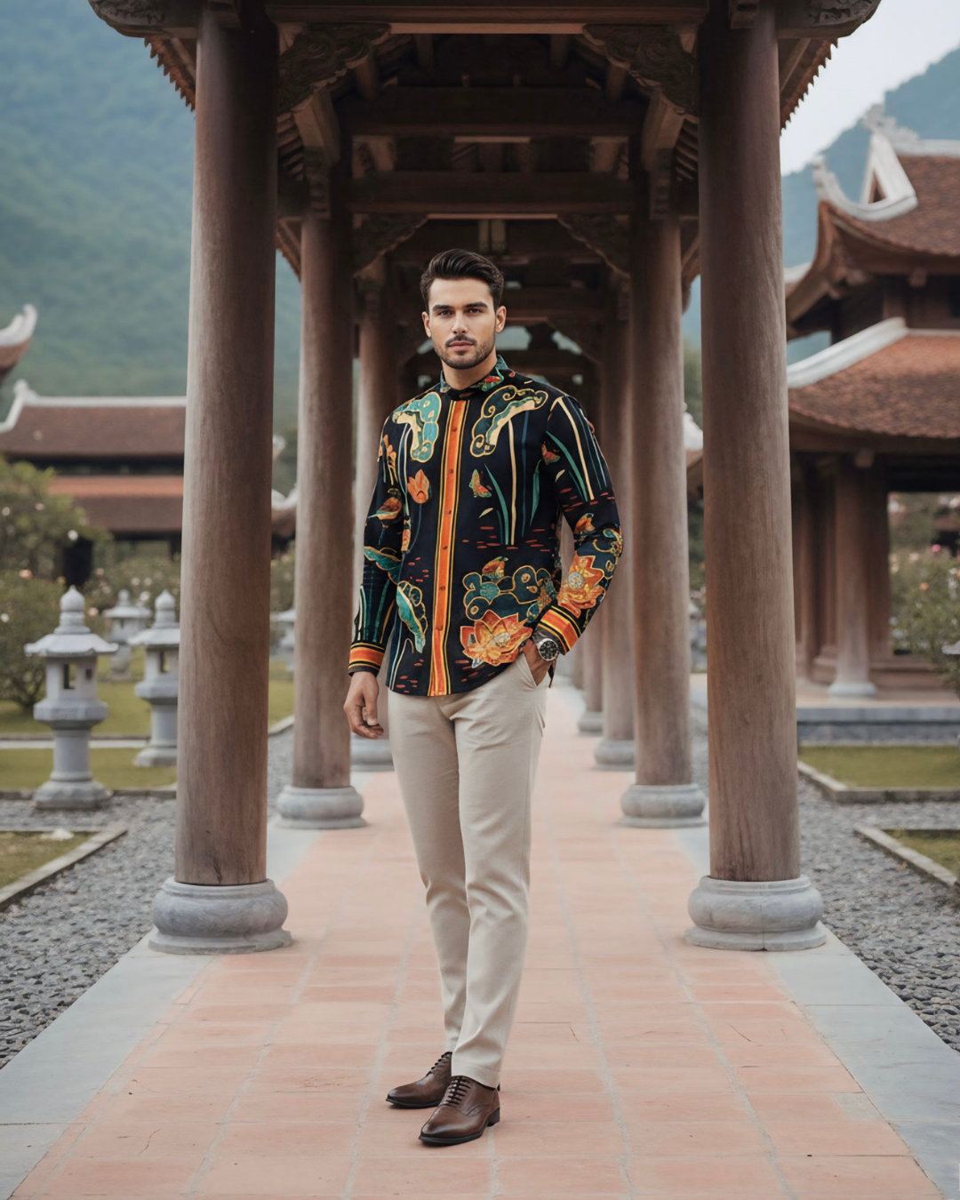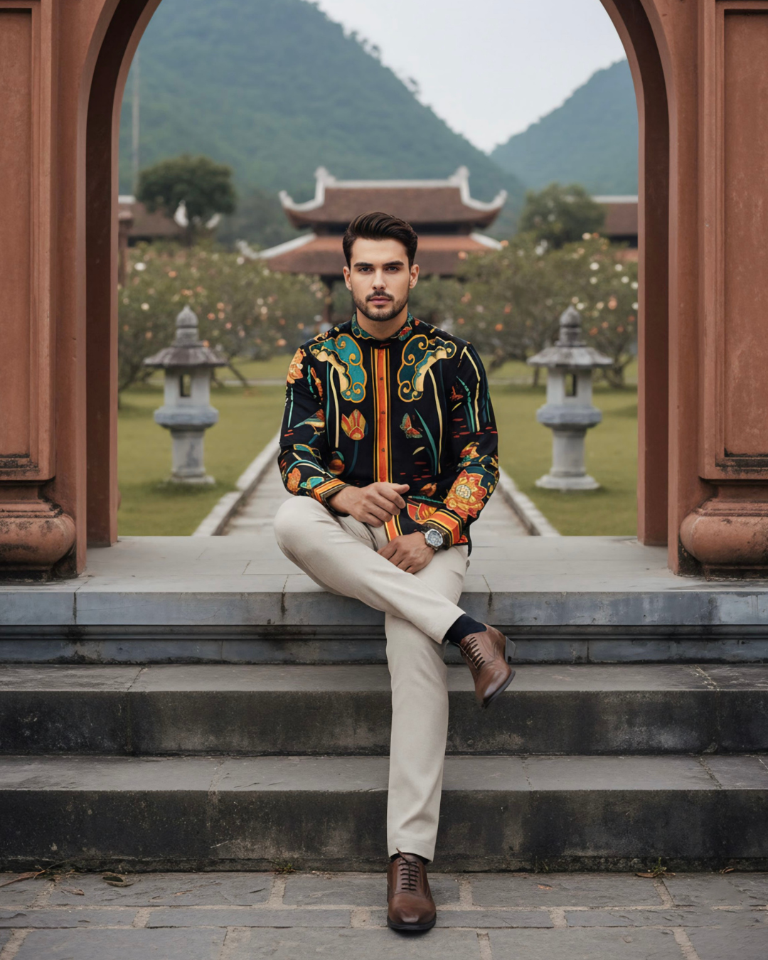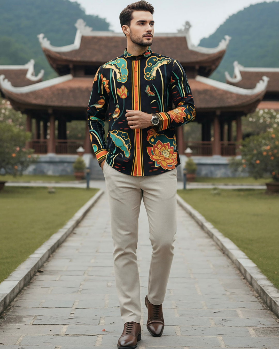 Lấy cảm hứng từ tinh thần lịch lãm thế kỷ XIX, Áo Sơ Mi Nam Lụa Cổ Điển 1870 được chế tác từ lụa tơ tằm mềm mại, in họa tiết văn hóa tinh xảo. Sự kết hợp giữa đường may chuẩn mực và chất liệu thượng hạng tạo nên phong thái sang trọng vượt thời gian.