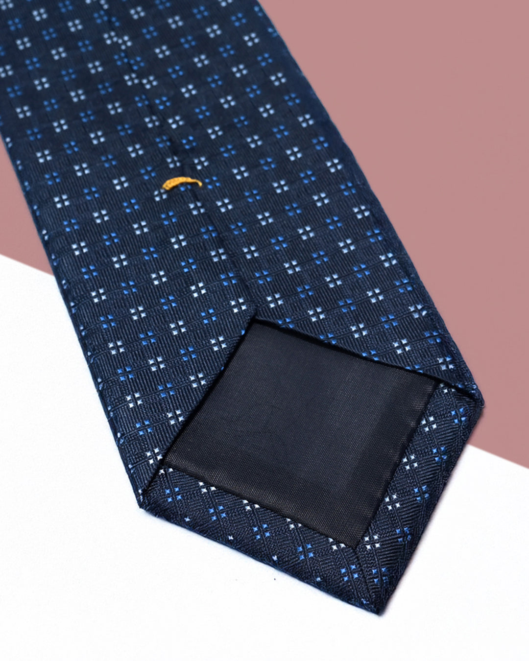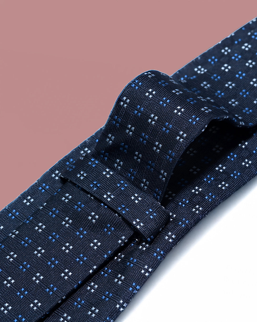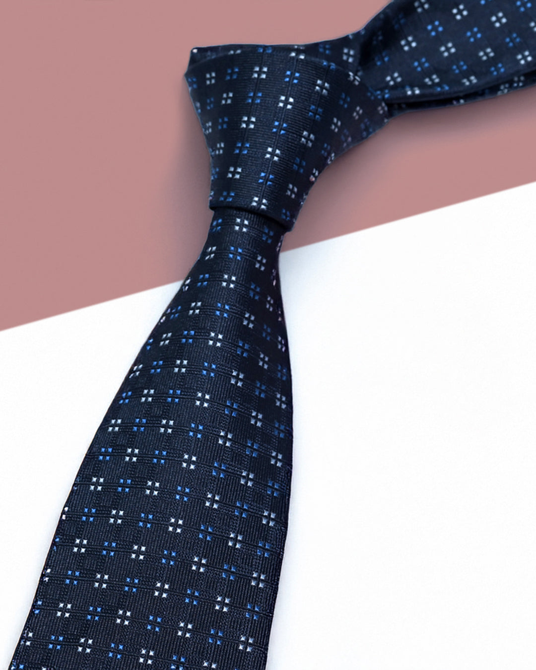 Cà Vạt Lụa Gấm Hoa Văn Chấm Ô Vuông / Xanh Than / 8cm x 145cm