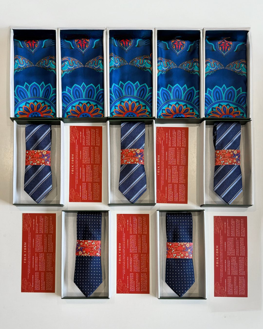Folk Form xin trân trọng giới thiệu dòng sản phẩm cà vạt được làm thủ công bằng vải gấm dệt nổi từ 100% sợi tơ tằm. Một chiếc cà vạt không chỉ là phụ kiện thời trang, mà còn là tuyên ngôn về phong cách. Mỗi thiết kế cà vạt là sự kết hợp tinh tế giữa sắc màu, hoa văn và chất lượng thủ công, tạo nên phong cách riêng biệt, không hòa lẫn, giúp các quý ông lịch lãm và nổi bật trong mọi dịp – từ môi trường công sở đến không khí trang trọng của sự kiện quan trọng.
