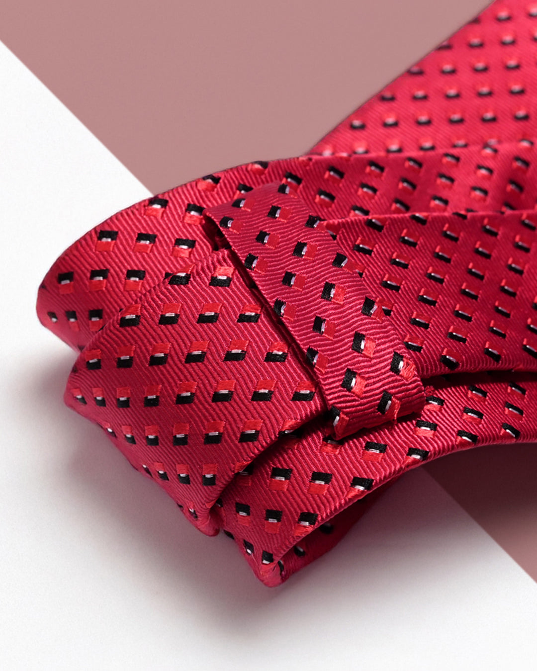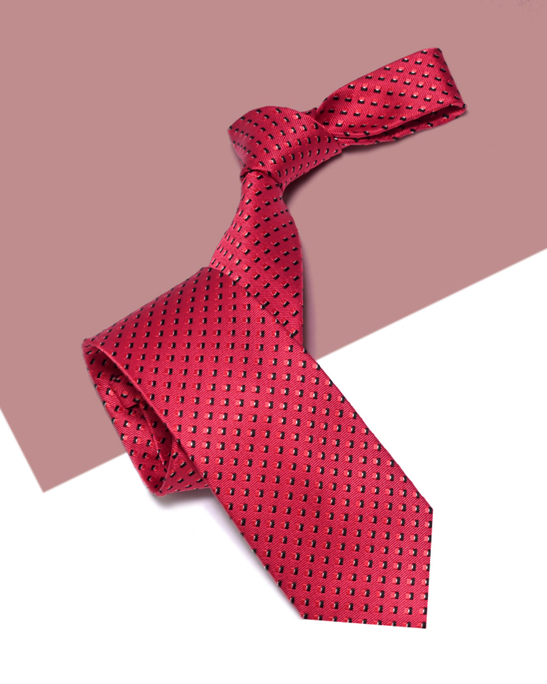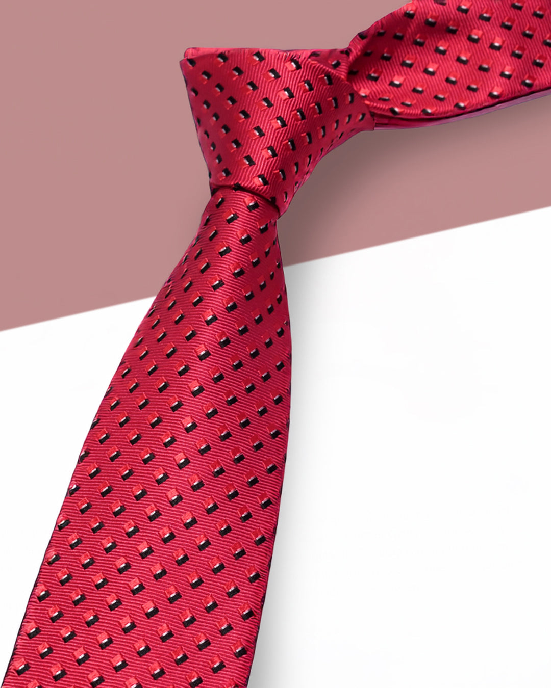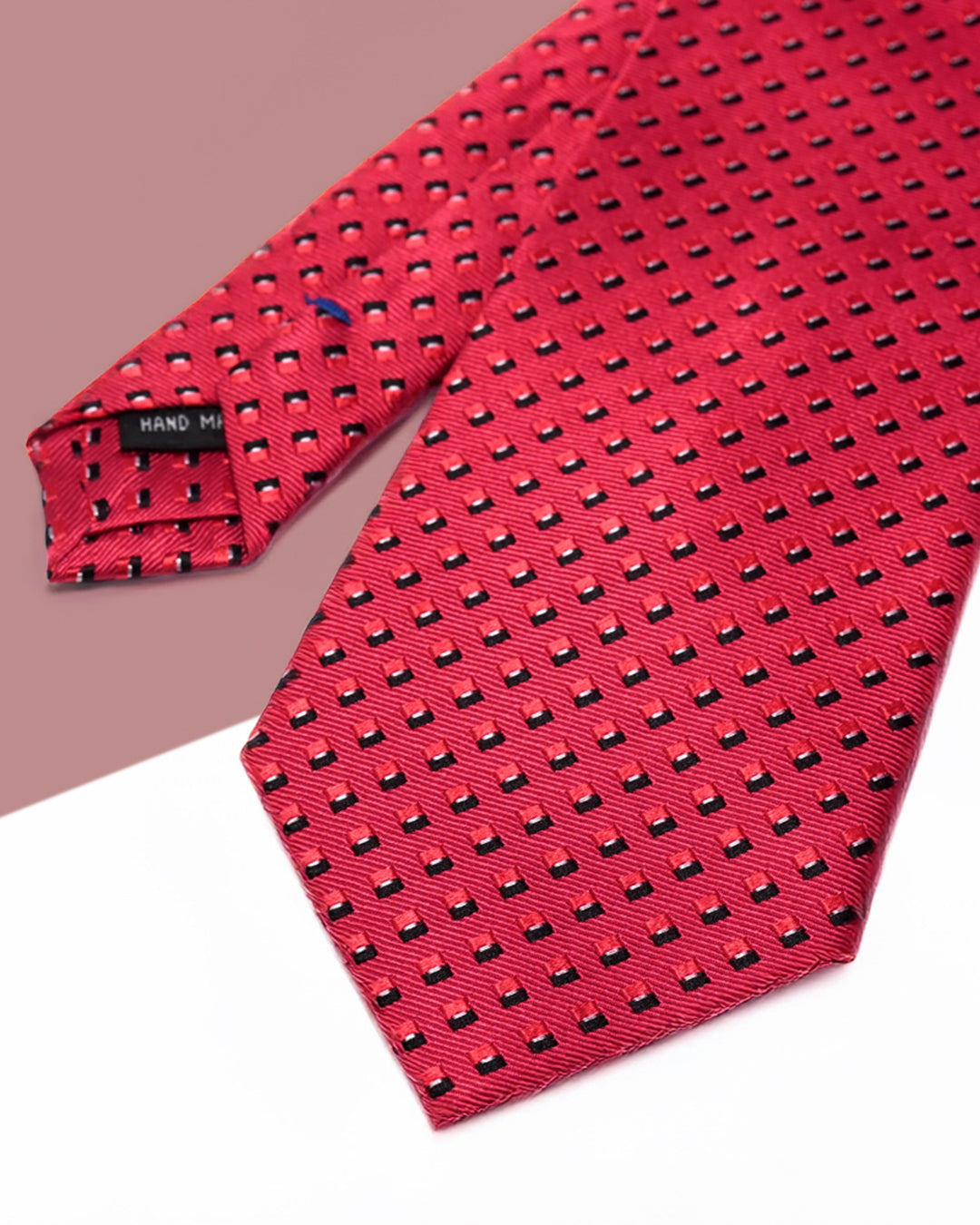 Cà Vạt Lụa Gấm Hoa Văn Lập Thể / Đỏ / 8cm x 145cm