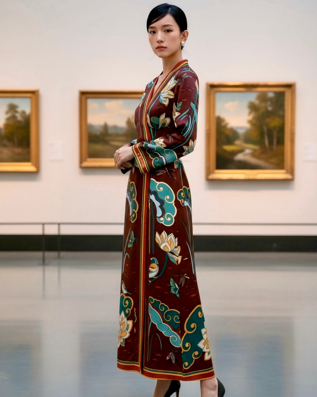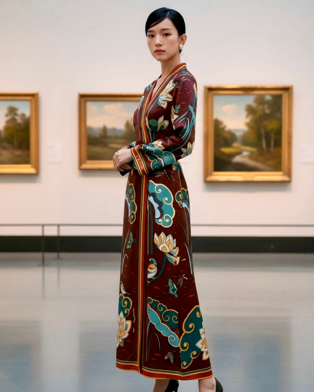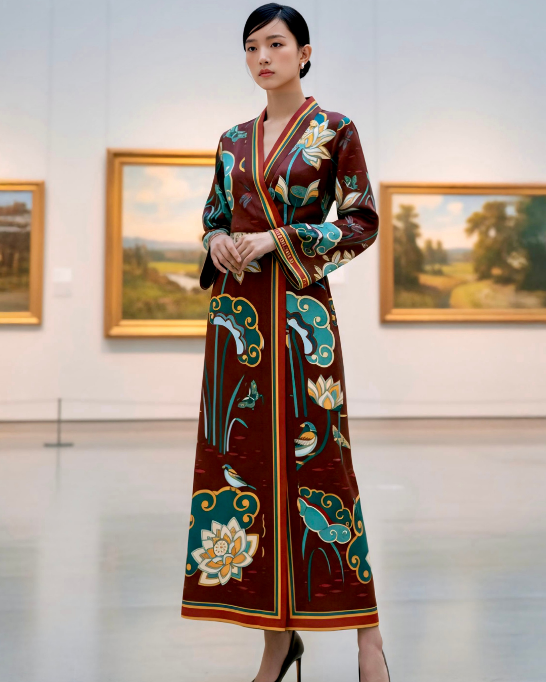 Mỗi chiếc khăn lụa, mỗi bộ xiêm y, mỗi vật phẩm thời trang... đều như một trang sách mở, dẫn dắt người xem vào thế giới đầy ý nghĩa. Một trang sử kể bằng tơ, nơi rồng thời Lý tượng trưng cho quyền uy và phồn vinh, phụng hoàng gợi khát vọng về hạnh phúc và trường tồn, hoa sen là biểu tượng của thanh cao và giác ngộ. Những họa tiết ấy được tái hiện bằng ngôn ngữ của nghệ thuật hiện đại – mềm mại, sâu sắc, đậm hồn Việt. Di sản không hề cũ kỹ – nó được tái sinh trong từng nếp lụa, hòa cùng hơi thở của người đương thời, trở thành phong cách sống tinh tế và đẳng cấp mà Folk Form gửi gắm.