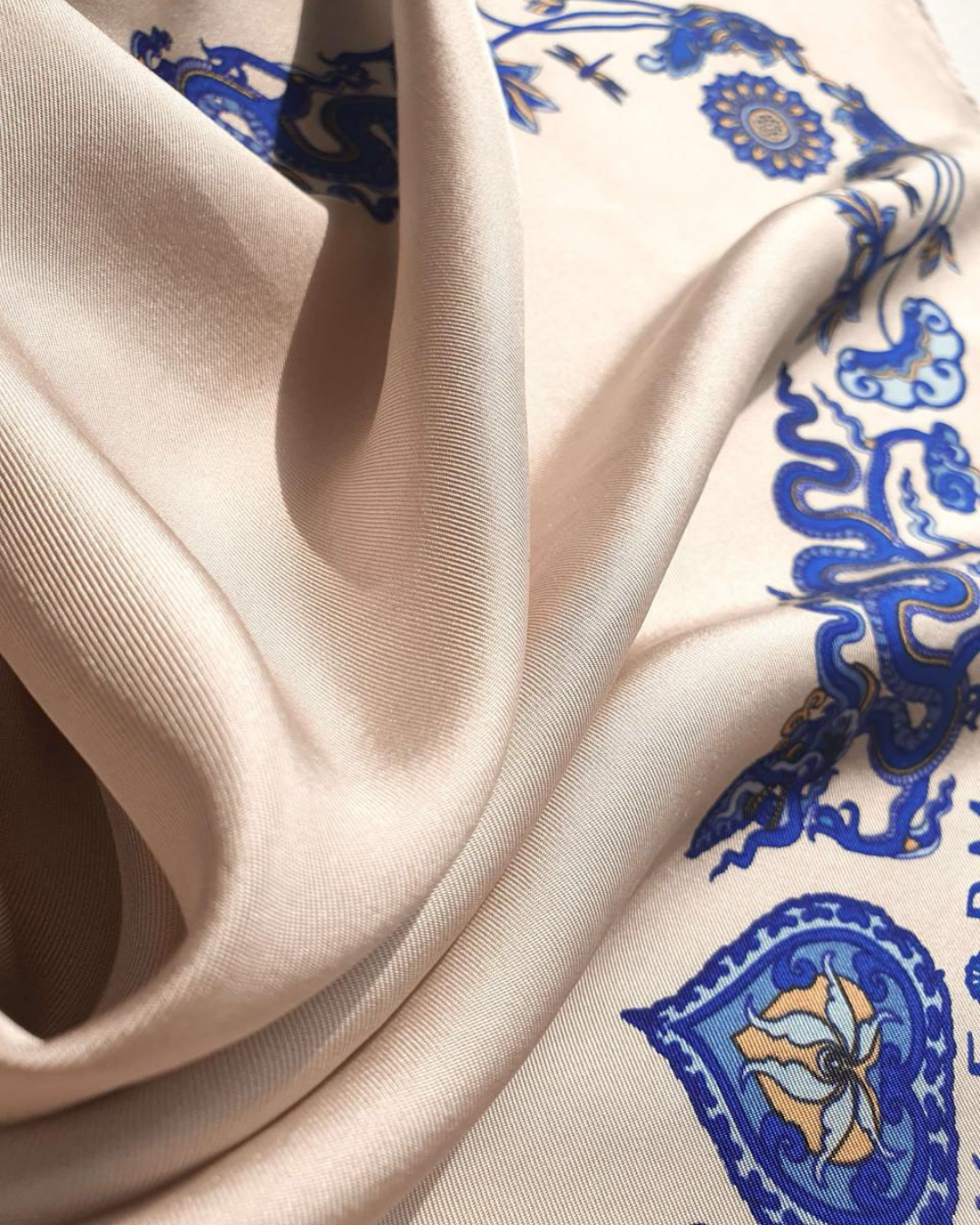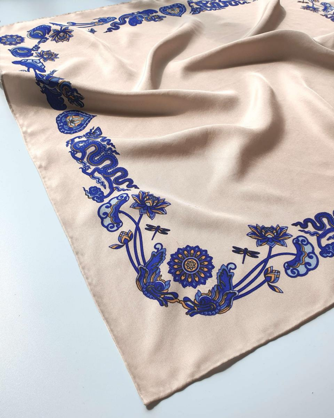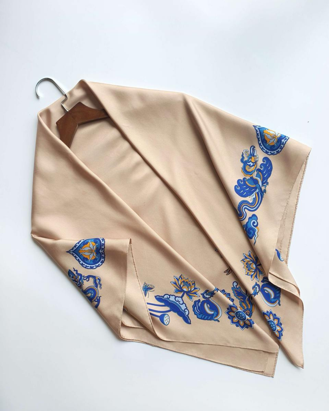 Khăn lụa be và xanh Folk Form mang đến nét sang trọng, giữ ẩm tự nhiên, thoáng khí và mềm mại. Hoàn hảo cho làn da nhạy cảm, khăn giúp giảm ma sát, giảm gãy rụng và xơ rối, đồng thời tăng cường độ bóng mượt. Hãy tạo kiểu theo bất kỳ phong cách nào bạn muốn, tùy theo tâm trạng và sự sáng tạo của bạn!