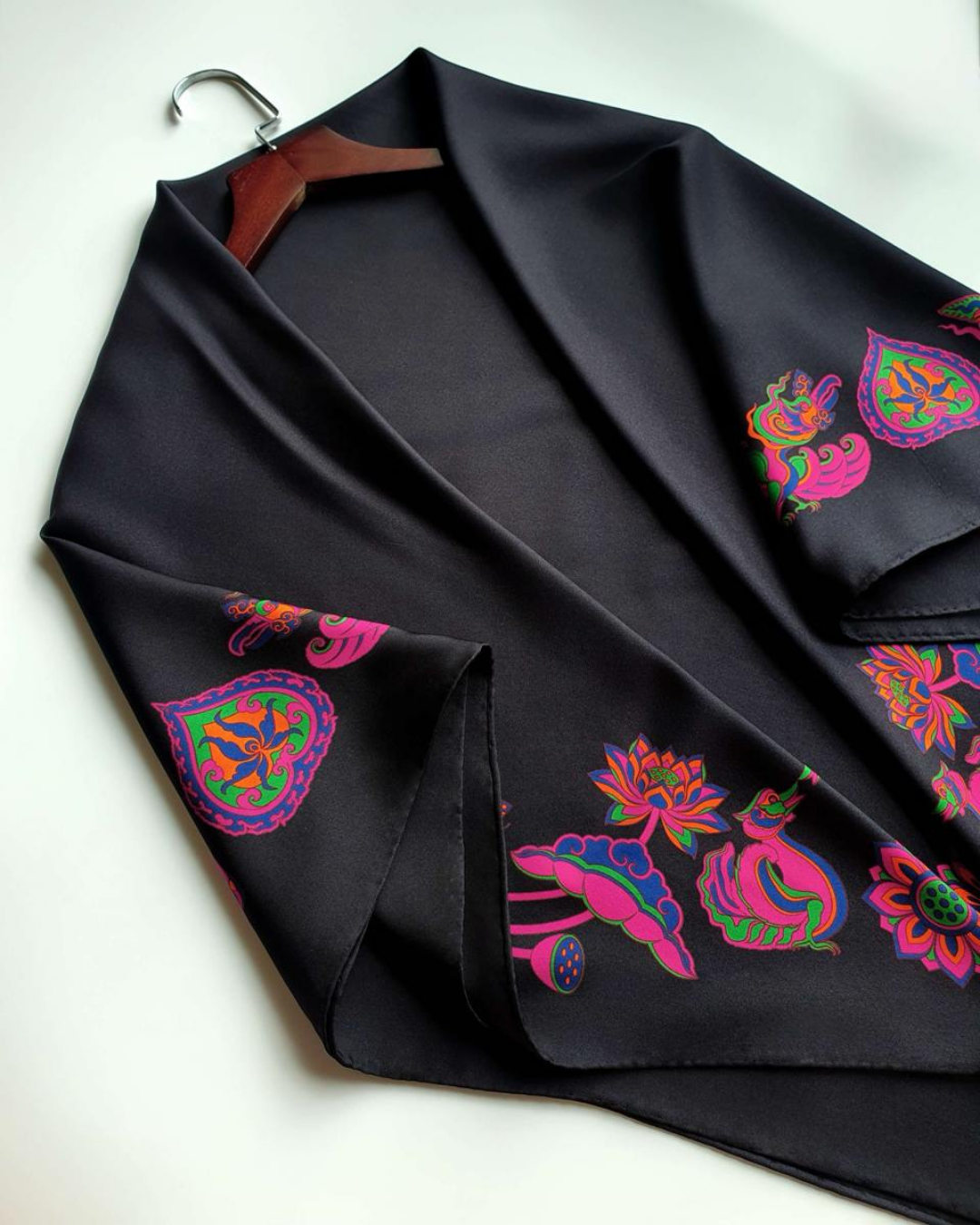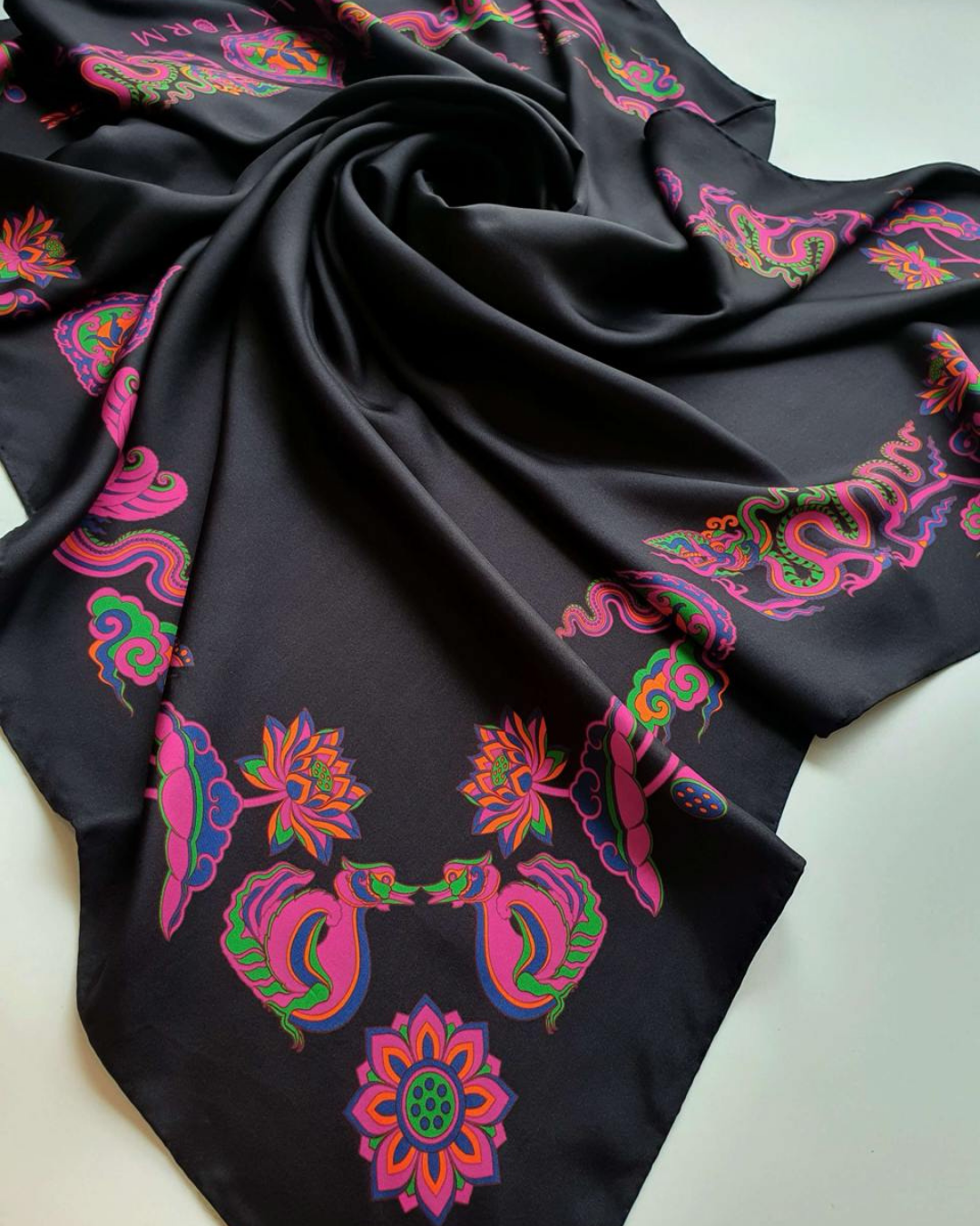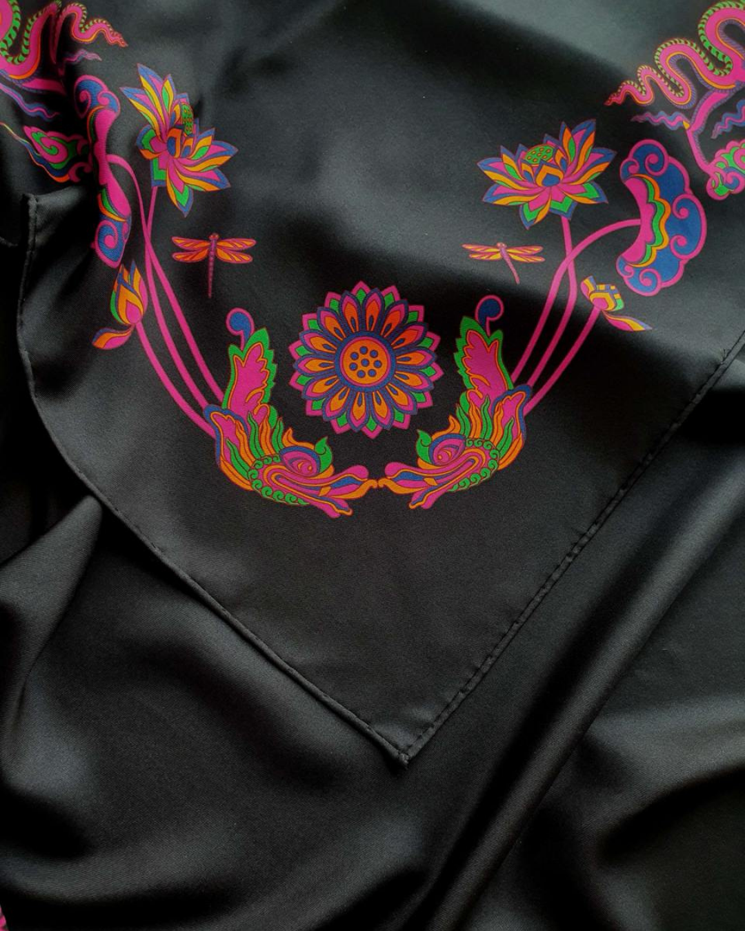 Khăn lụa đen và hồng Folk Form mang đến nét sang trọng, giữ ẩm tự nhiên, thoáng khí và mềm mại. Hoàn hảo cho làn da nhạy cảm, khăn giúp giảm ma sát, giảm gãy rụng và xơ rối, đồng thời tăng cường độ bóng mượt. Hãy tạo kiểu theo bất kỳ phong cách nào bạn muốn, tùy theo tâm trạng và sự sáng tạo của bạn!