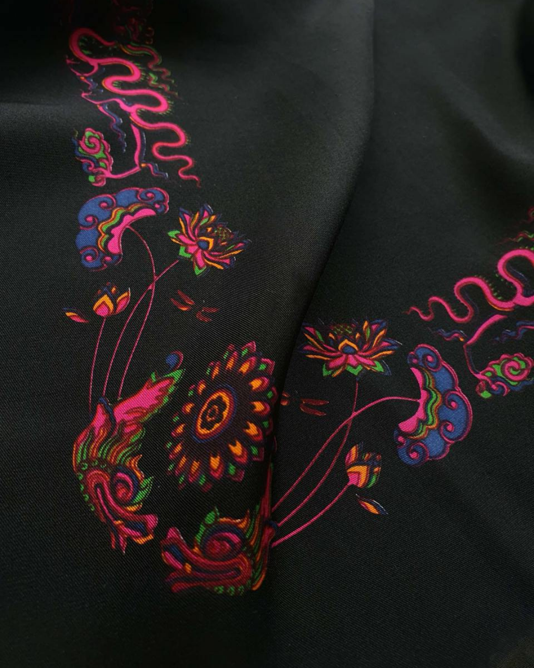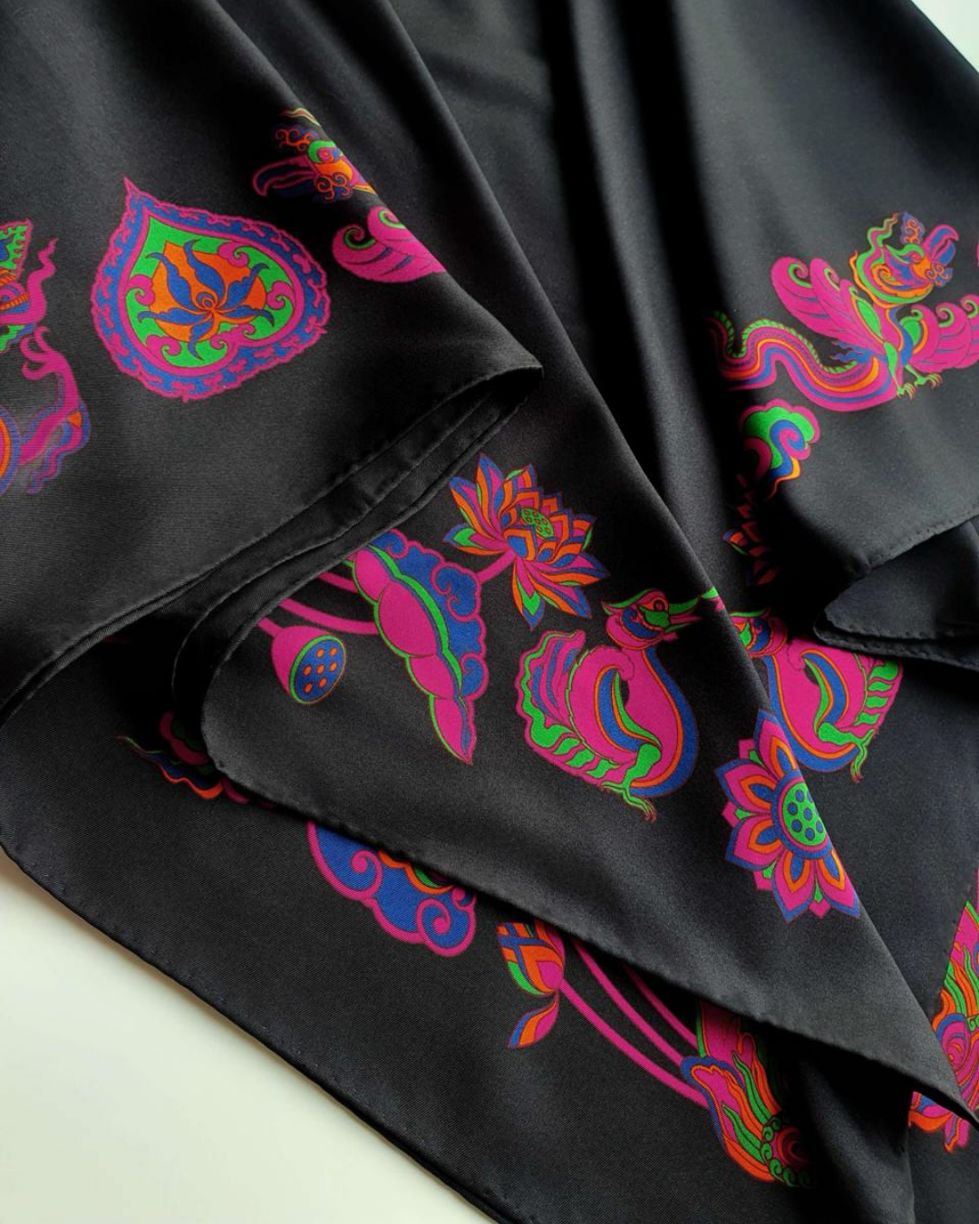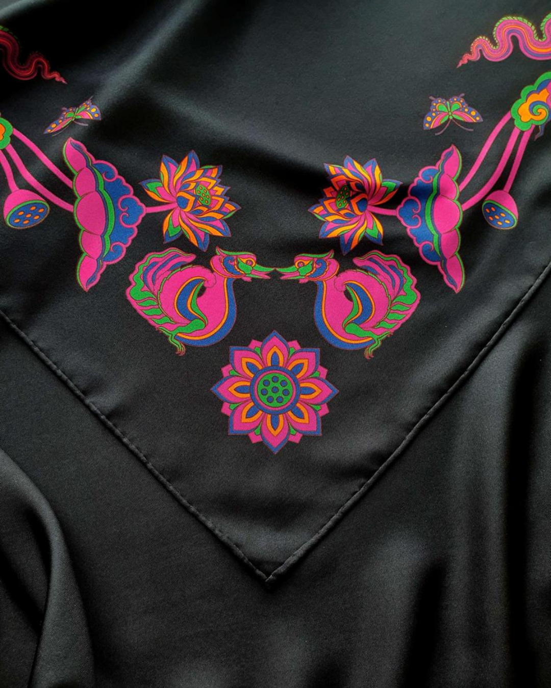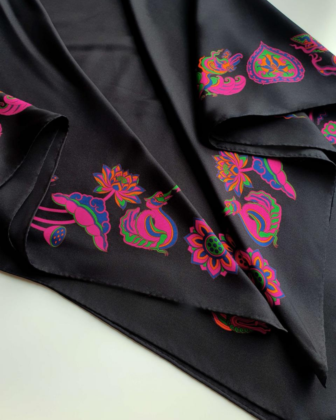Khăn lụa đen và hồng Folk Form mang đến nét sang trọng, giữ ẩm tự nhiên, thoáng khí và mềm mại. Hoàn hảo cho làn da nhạy cảm, khăn giúp giảm ma sát, giảm gãy rụng và xơ rối, đồng thời tăng cường độ bóng mượt. Hãy tạo kiểu theo bất kỳ phong cách nào bạn muốn, tùy theo tâm trạng và sự sáng tạo của bạn!