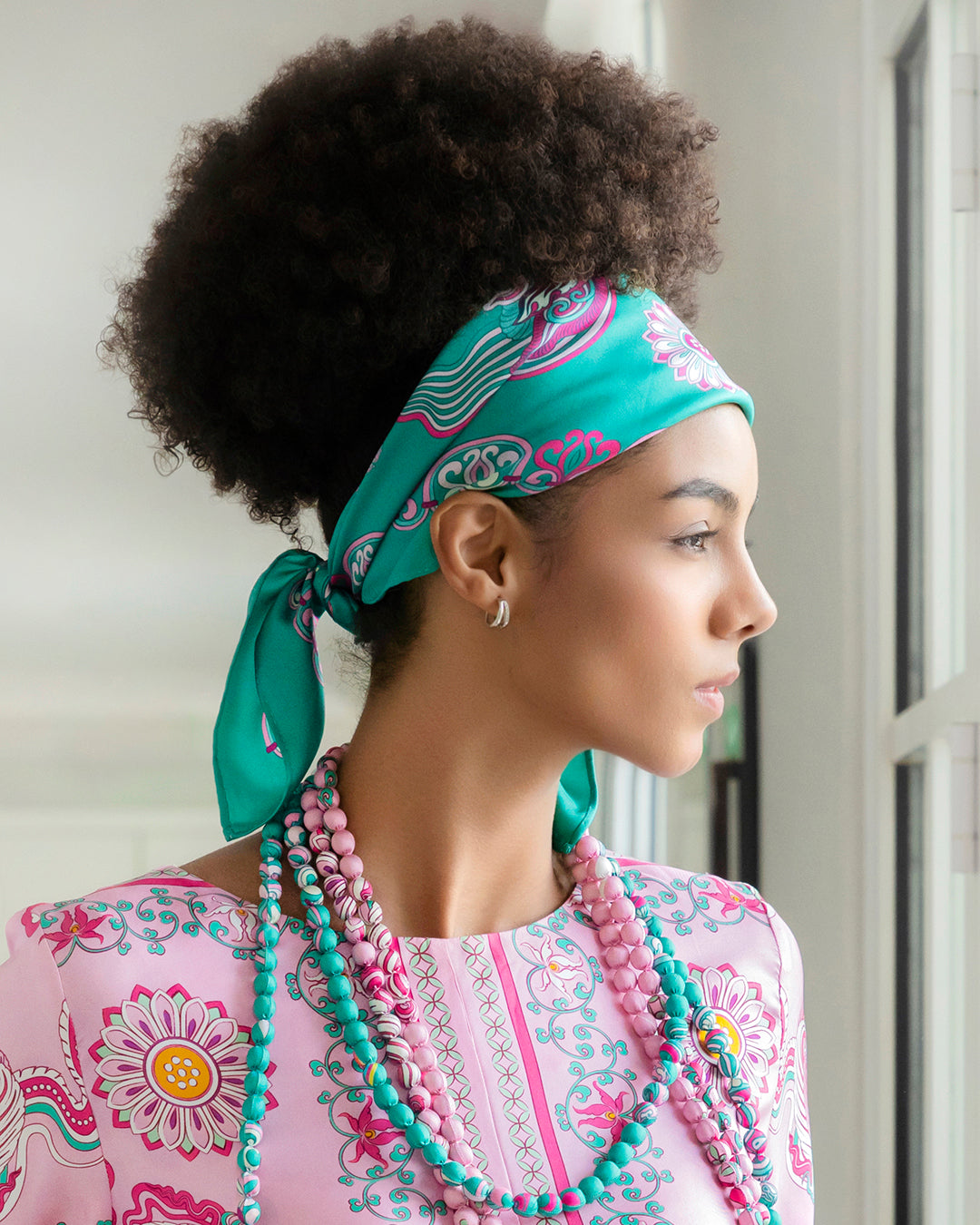 Khăn lụa xanh ngọc Folk Form mang đến nét sang trọng, giữ ẩm tự nhiên, thoáng khí và mềm mại. Hoàn hảo cho làn da nhạy cảm, khăn giúp giảm ma sát, giảm gãy rụng và xơ rối, đồng thời tăng cường độ bóng mượt. Hãy tạo kiểu theo bất kỳ phong cách nào bạn muốn, tùy theo tâm trạng và sự sáng tạo của bạn!