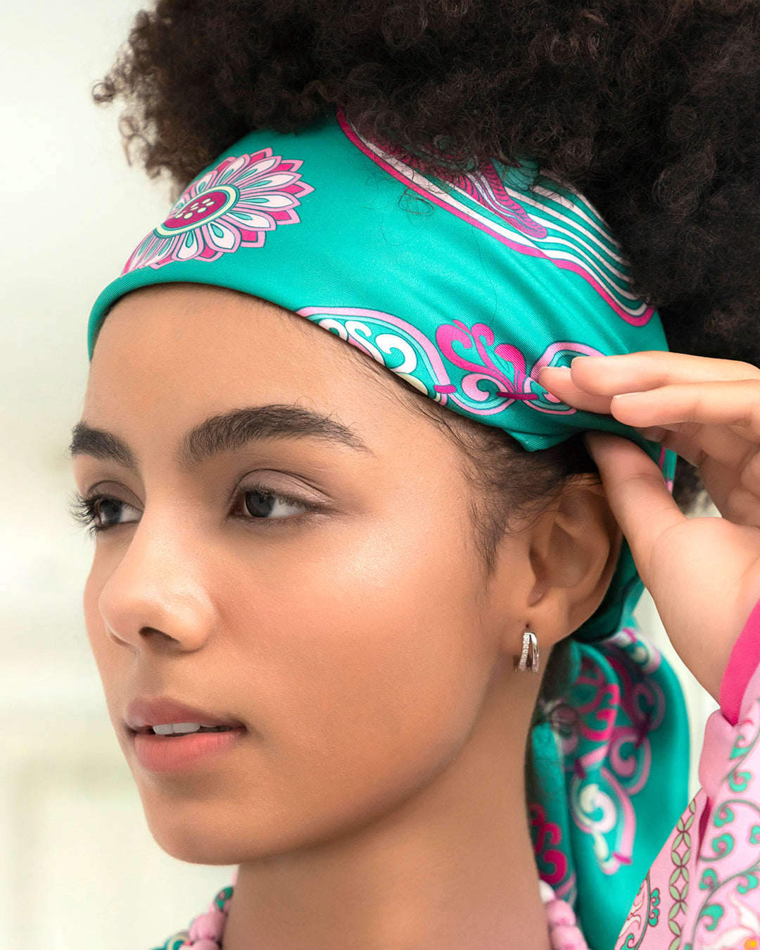 Với kích thước nhỏ gọn, chiếc khăn này phù hợp cho những chị yêu thích sự nhẹ nhàng. Có thể thắt cổ để làm nổi bật phong cách trẻ trung. Làm băng đô tóc, hoặc buộc cổ tay như một phụ kiện độc đáo, đầy cá tính.
