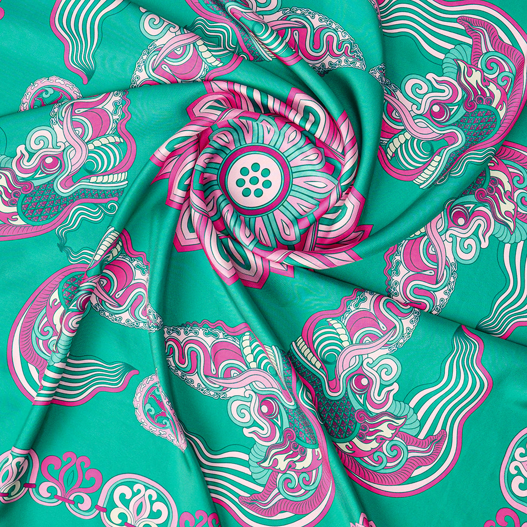 Hoạ tiết trên khăn là mẫu vẽ kỹ thuật số, được thiết kế để tương thích với phương pháp in lưới thủ công trên lụa.