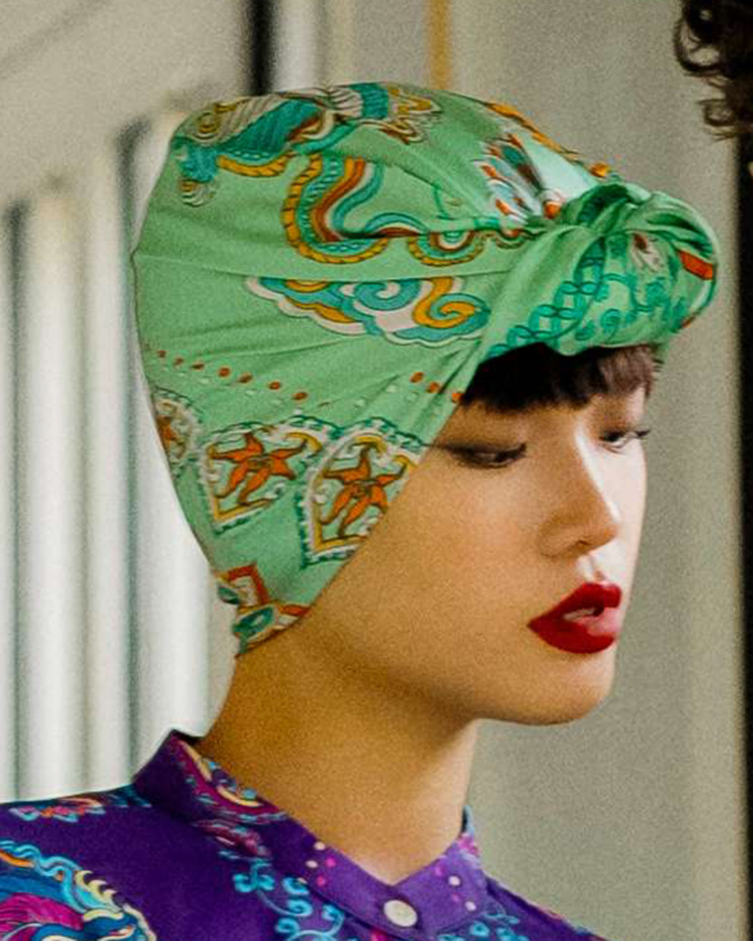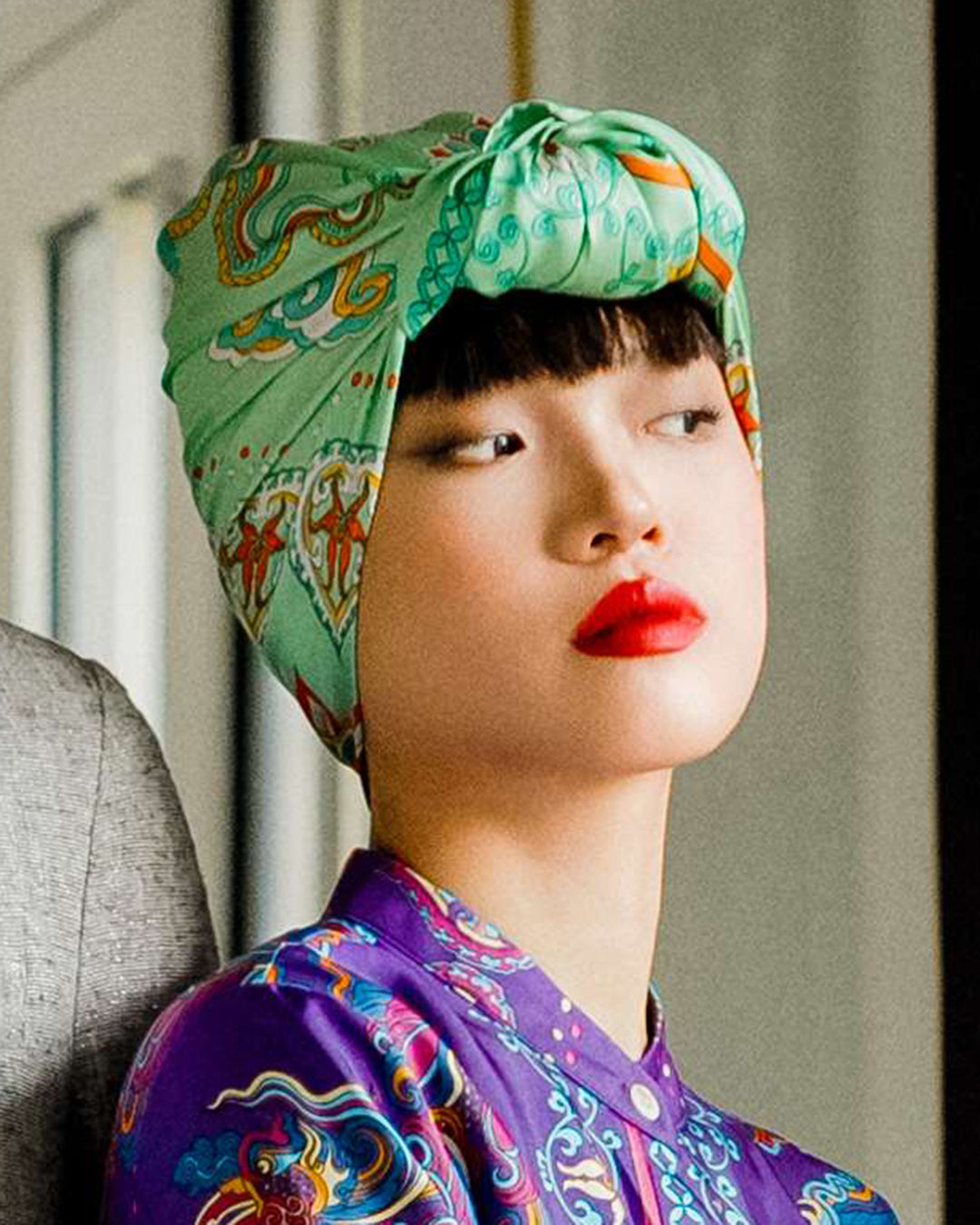 • Gấp lại thành khăn trùm đầu hoặc khăn turban thời trang