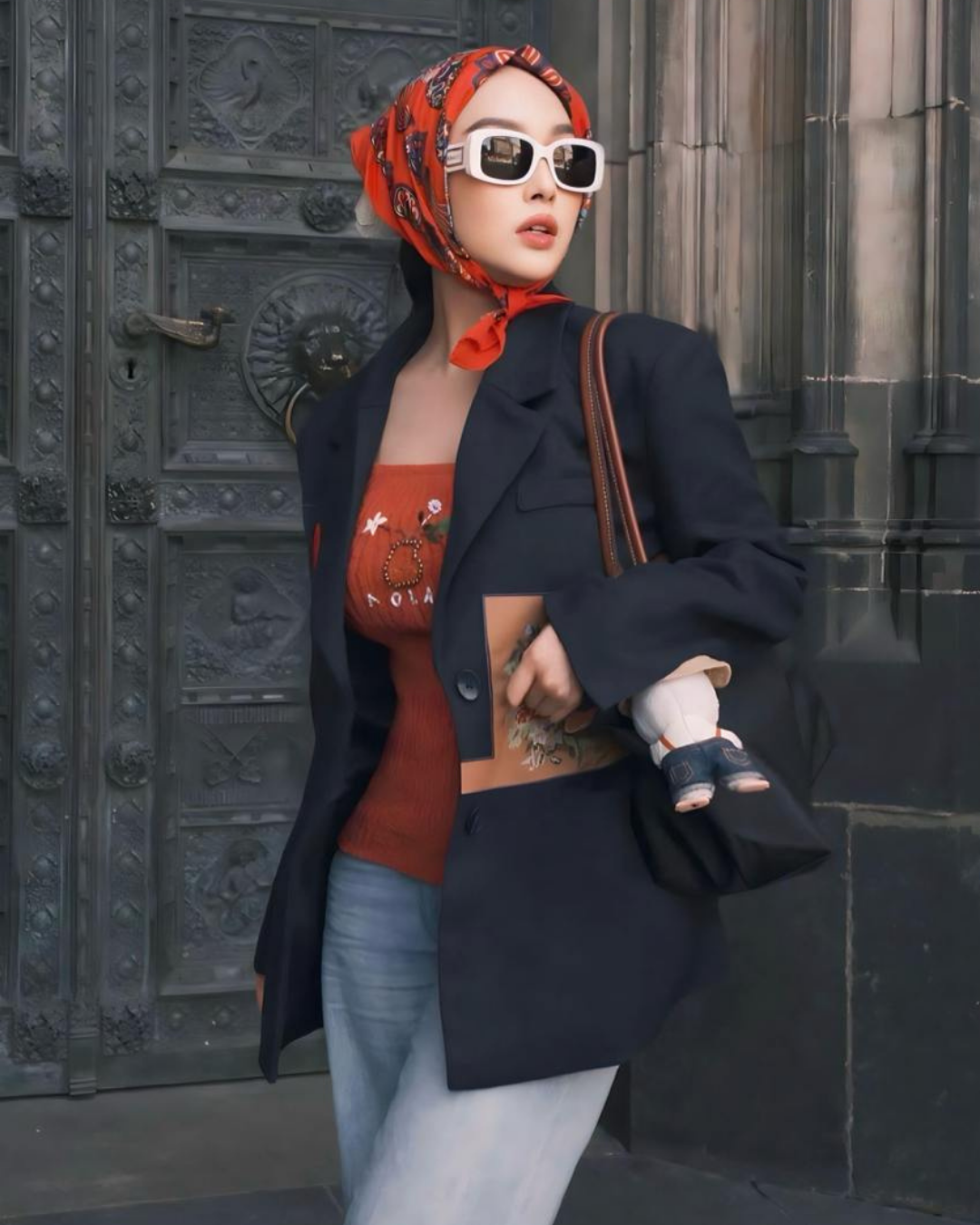 Gấp lại thành khăn trùm đầu, băng đô, khăn xếp hoặc khăn quấn tóc sành điệu