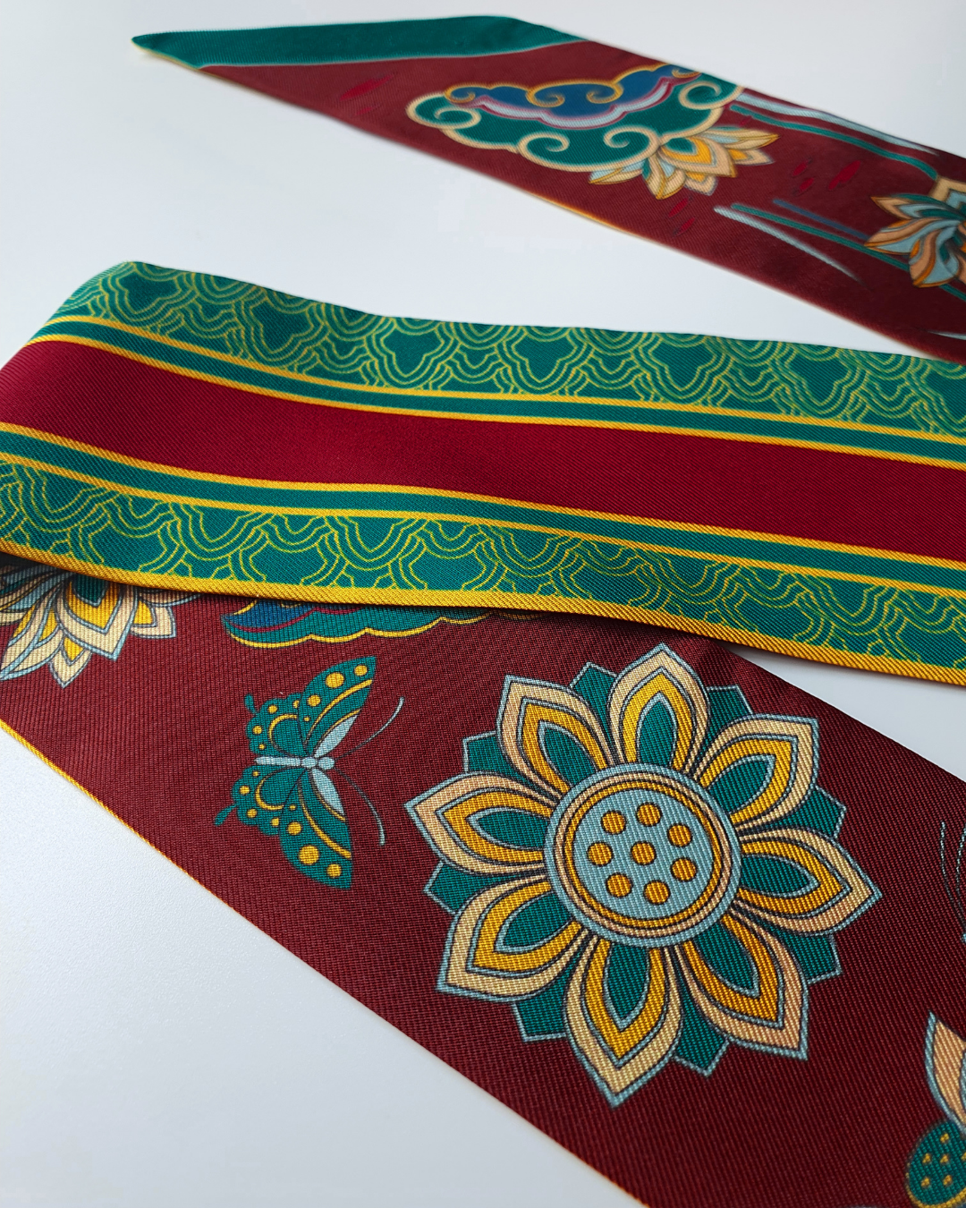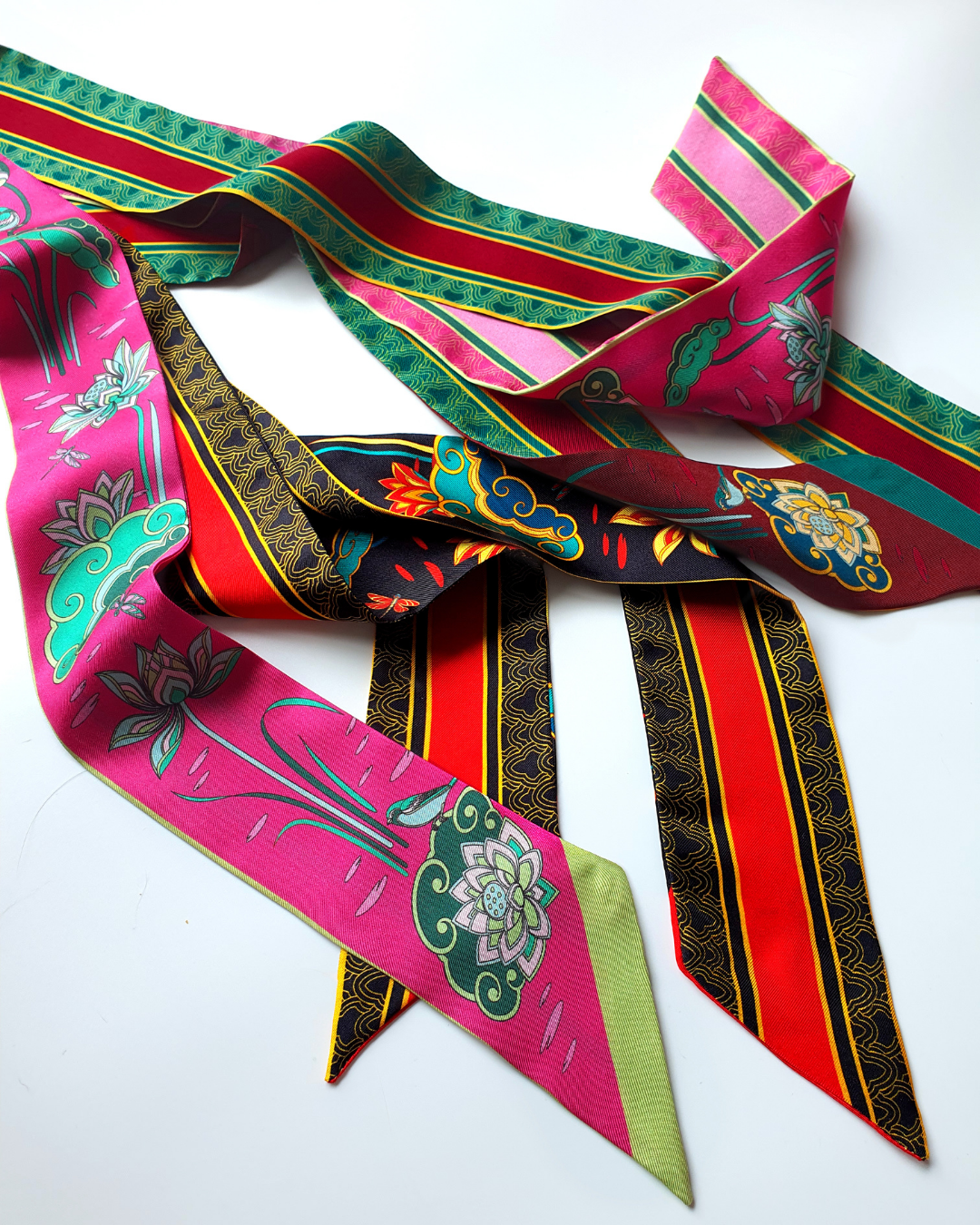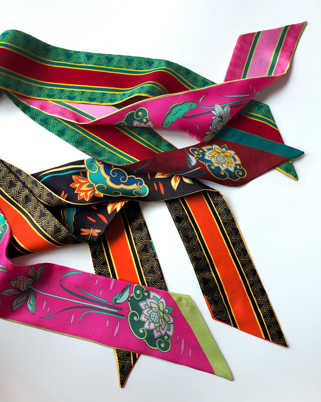 • + 01 Khăn Twilly lụa tơ tằm thượng hạng size 6cmx150cm