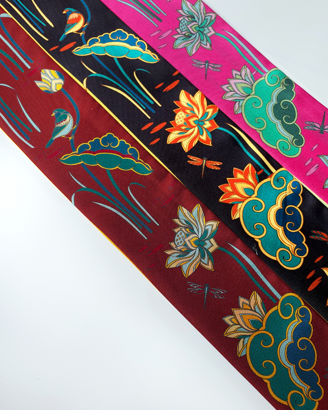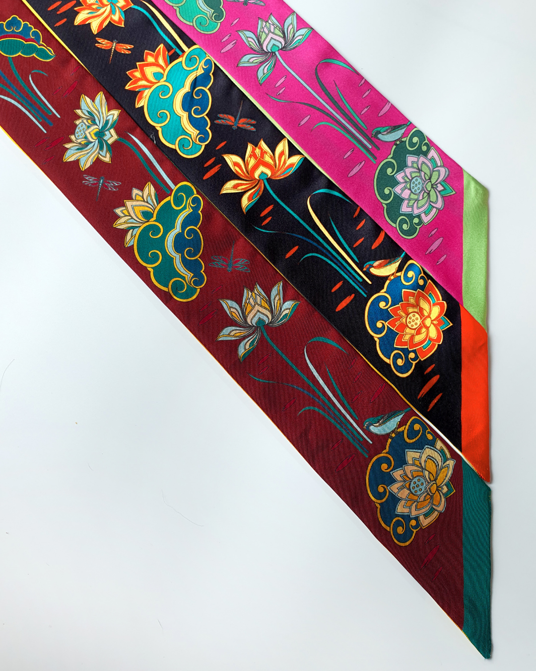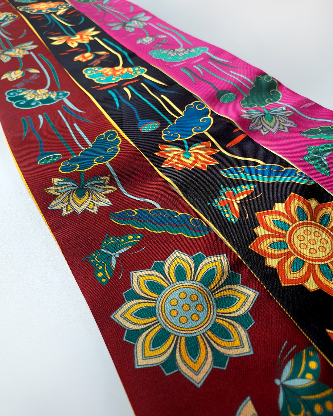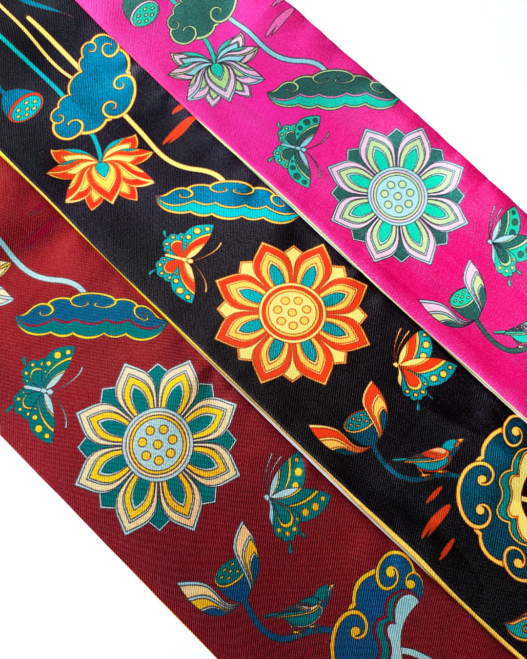 • + 01 Khăn Twilly lụa tơ tằm thượng hạng size 6cmx150cm