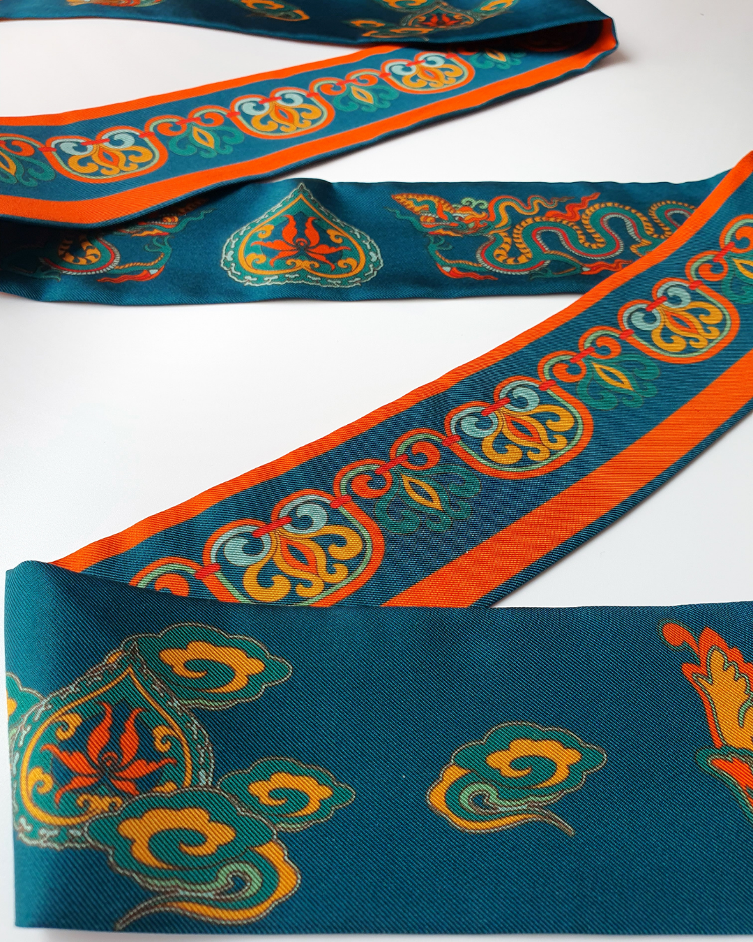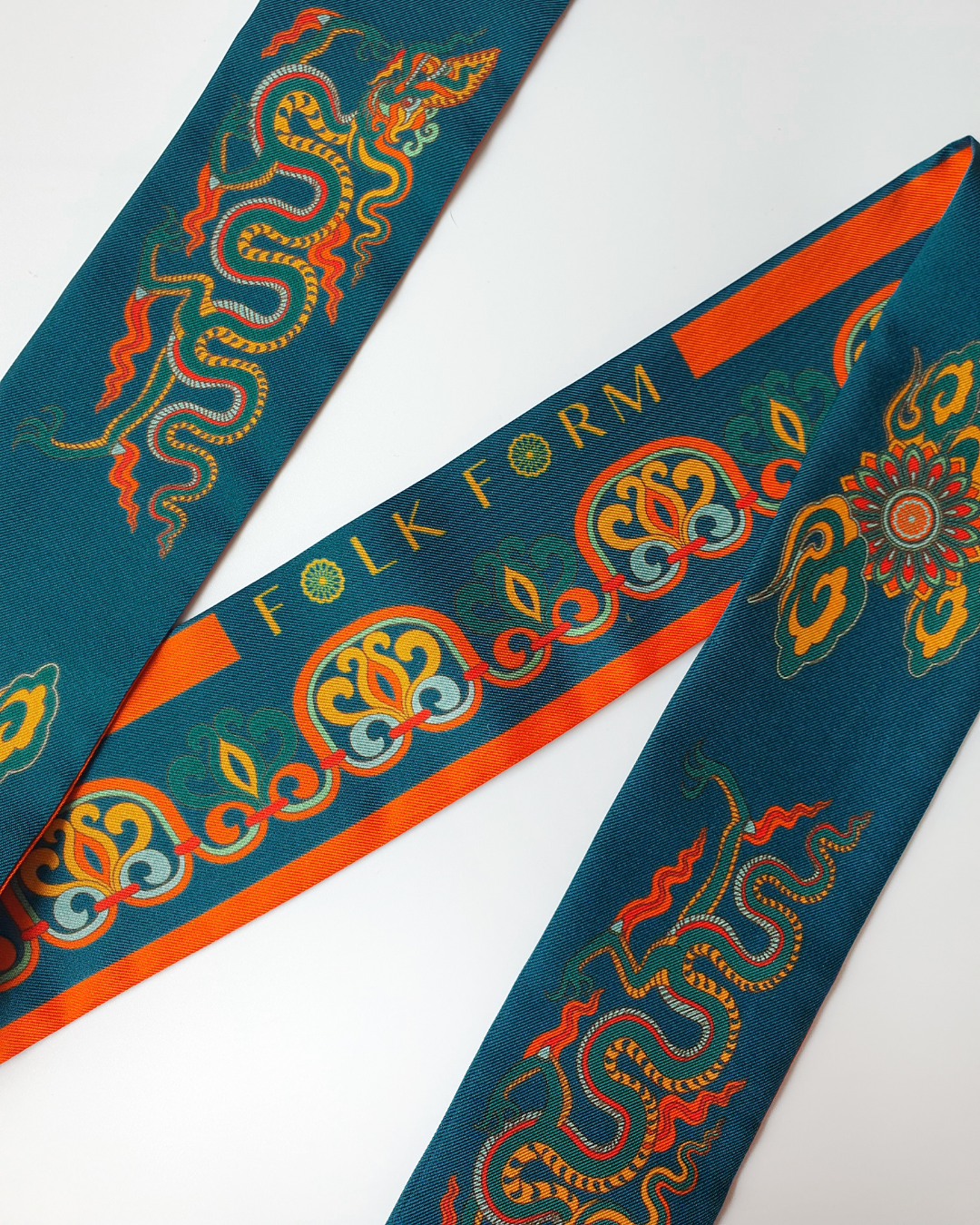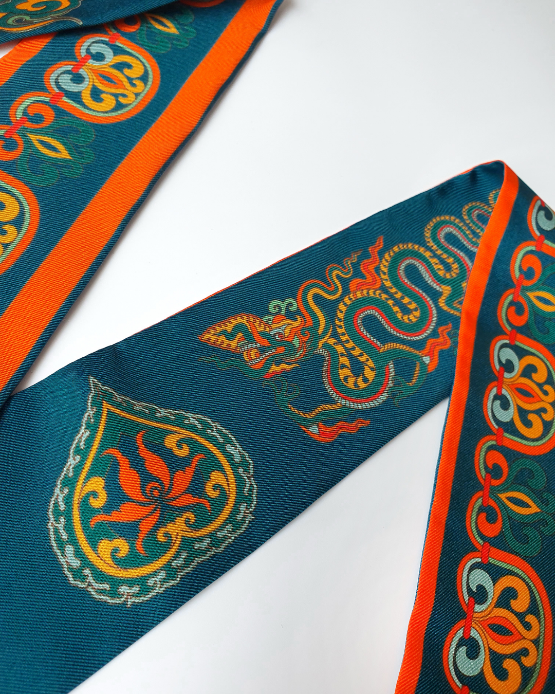 Quà Tặng Cao Cấp / Khăn Twilly Lụa Hương Vân Long Mộng / Xanh Cổ Vịt & Da Cam / 6cm x 150cm