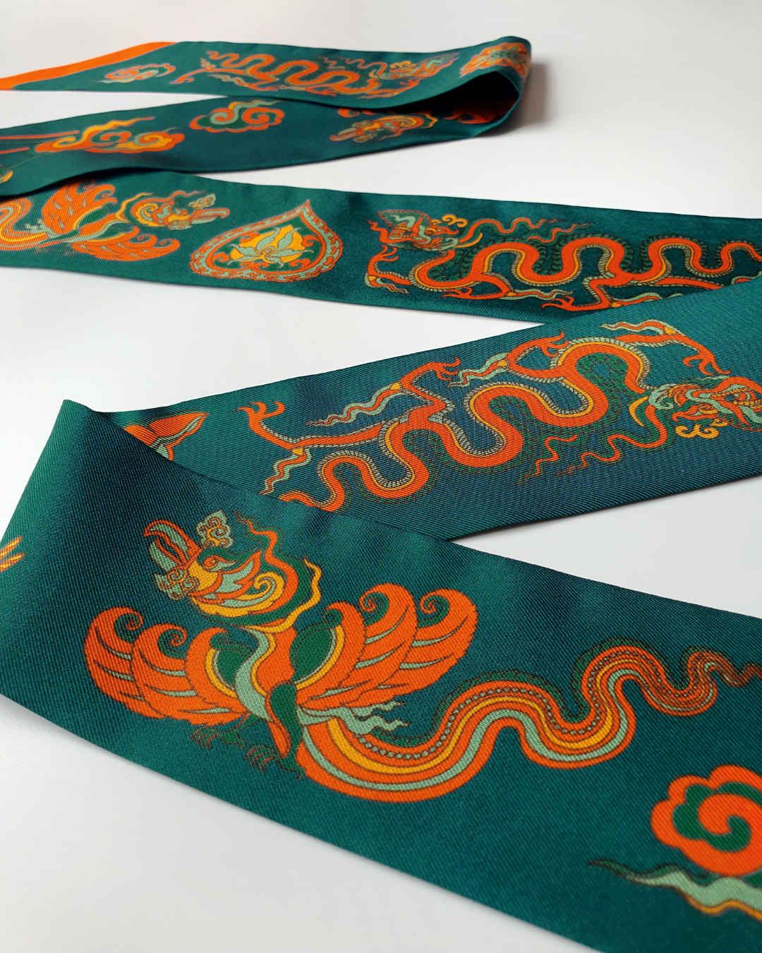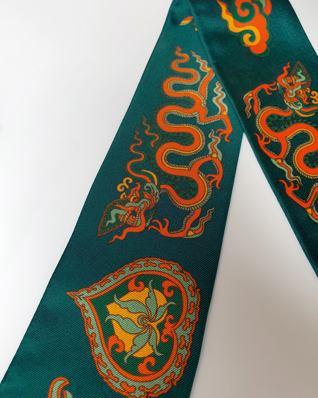 Quà Tặng Cao Cấp / Khăn Twilly Lụa Lý Quốc Ký Sự / Xanh Lá Đậm & Vàng / 6cm x 150cm