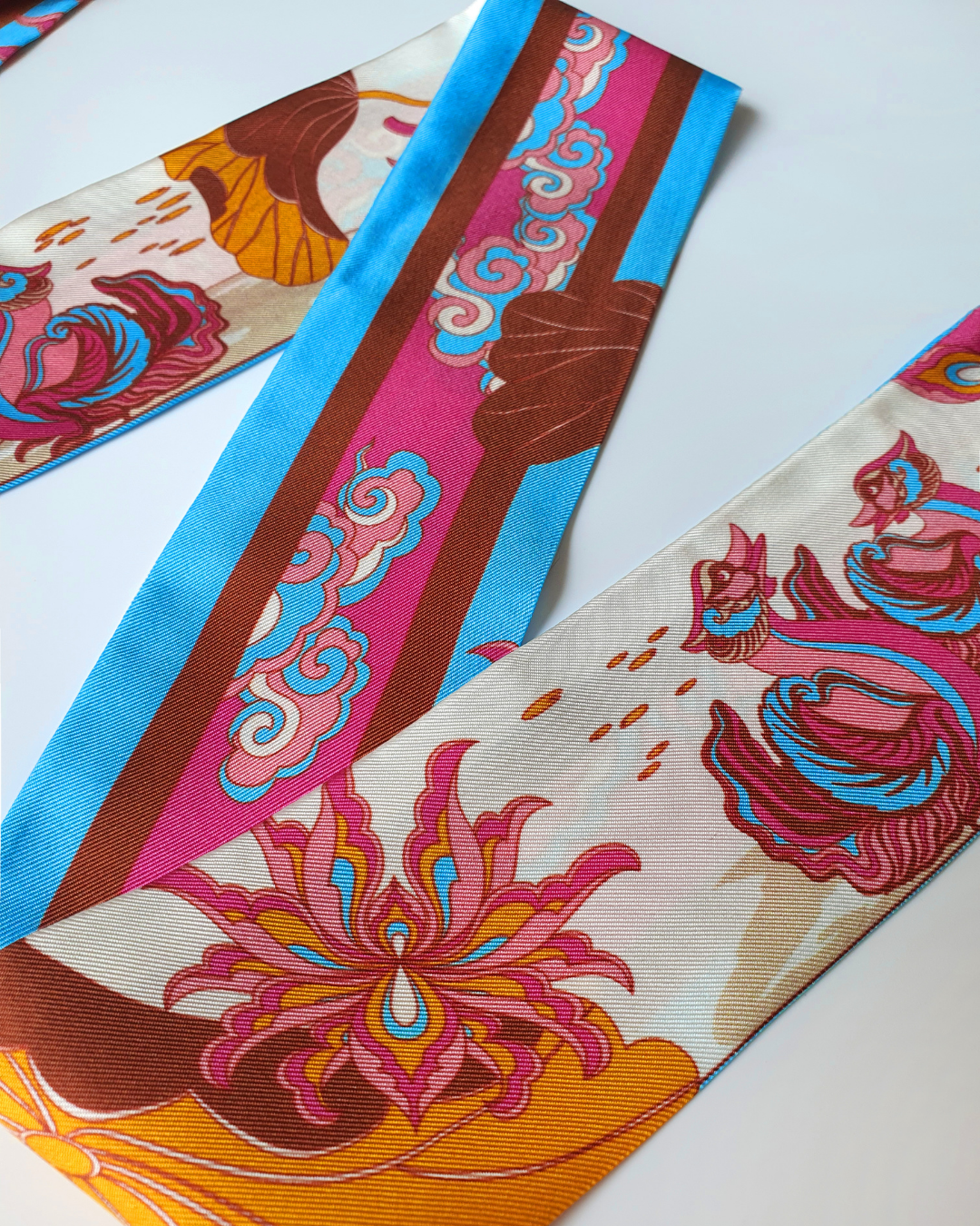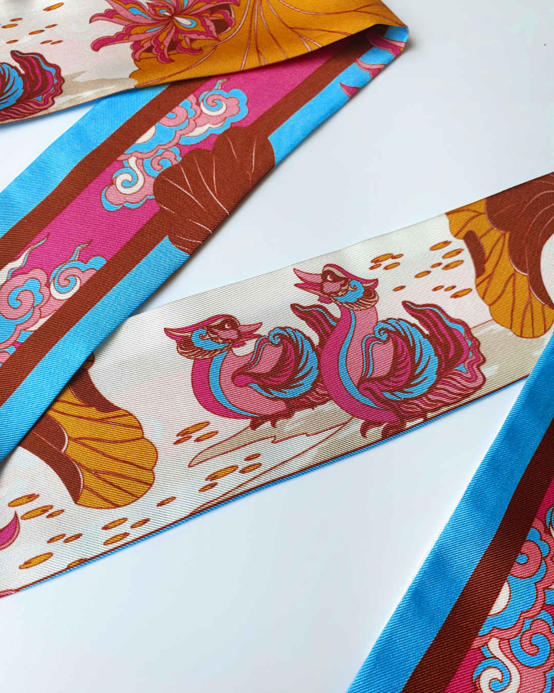 • + 01 Khăn Twilly lụa tơ tằm thượng hạng size 6cmx150cm