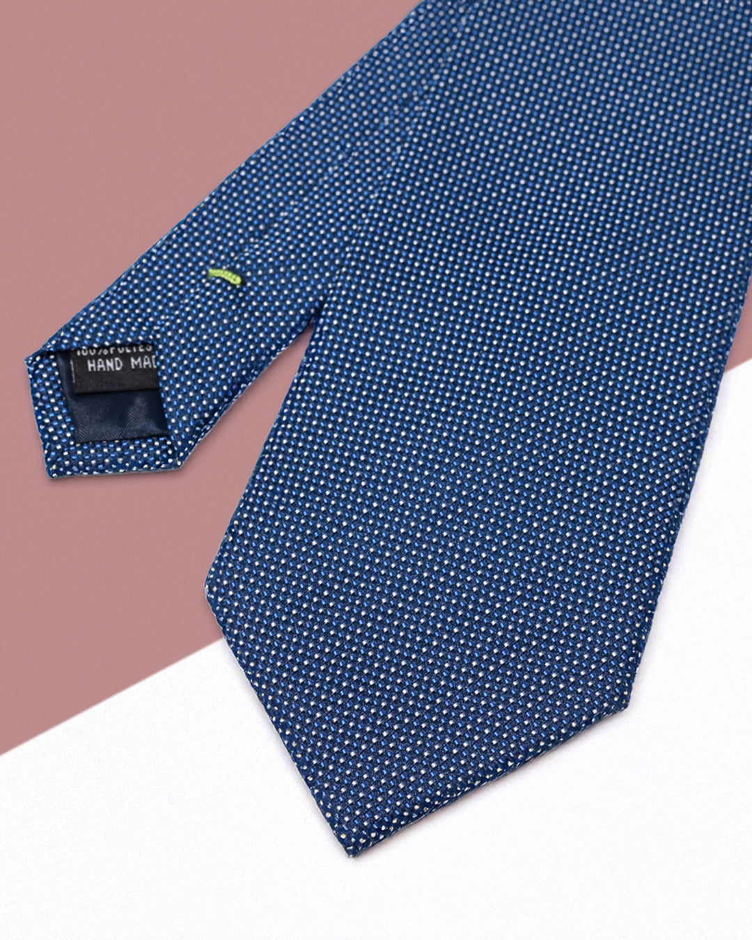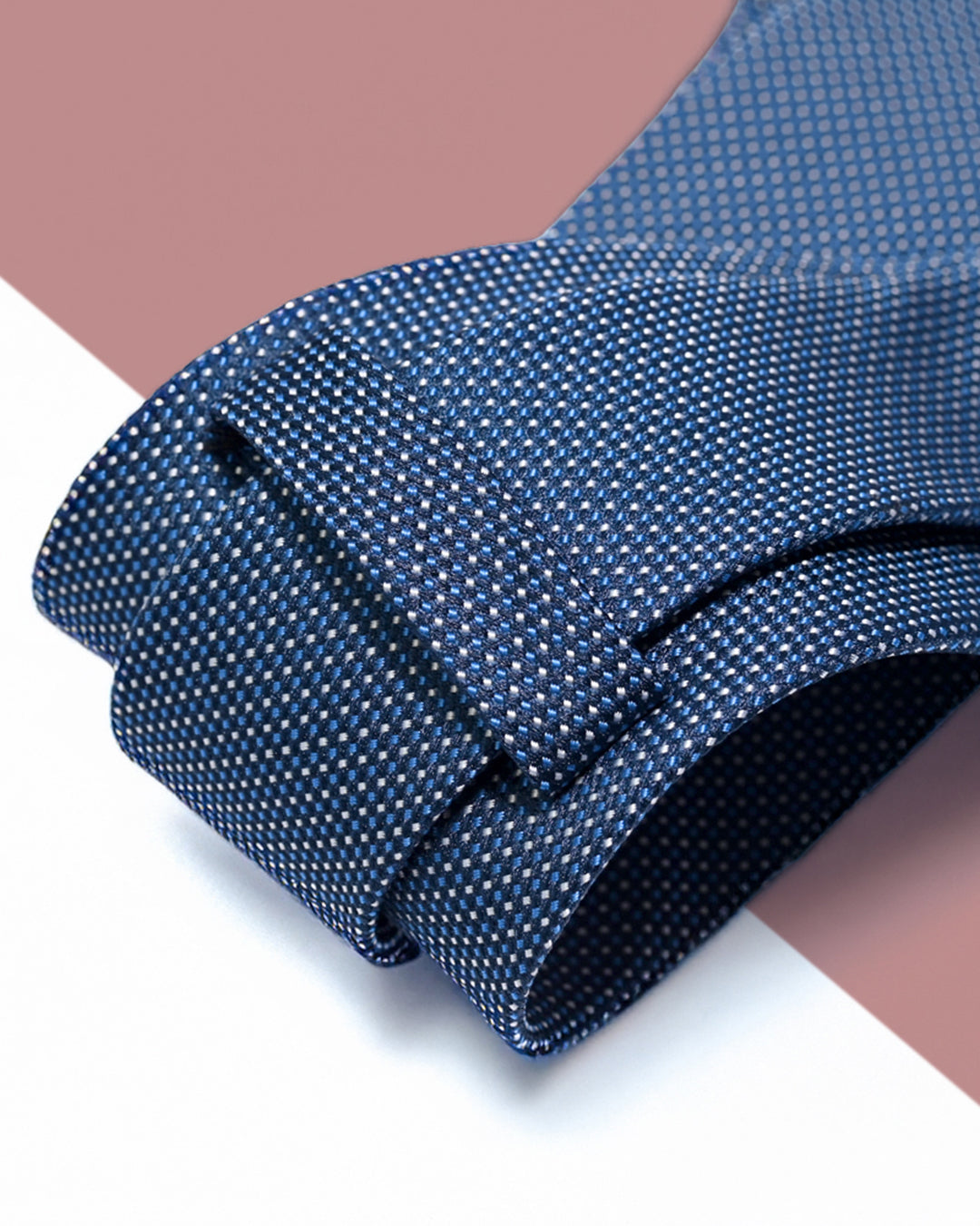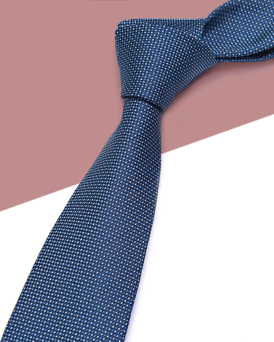 Quà Tặng Cao Cấp / Cà Vạt Lụa Gấm Hoa Văn Chấm Nhỏ / Xanh Dương / 8cm x 145cm