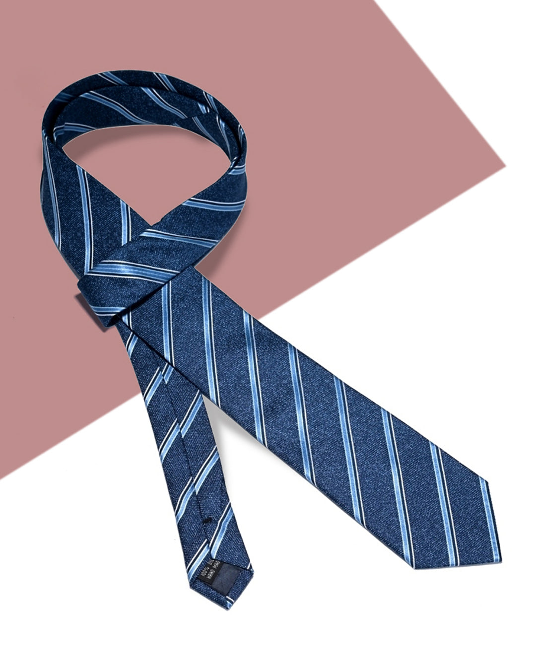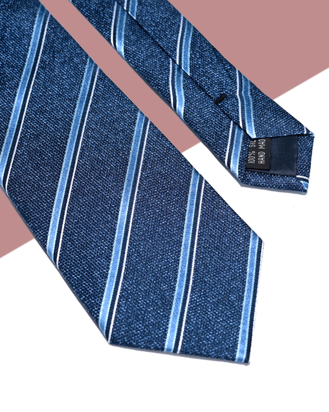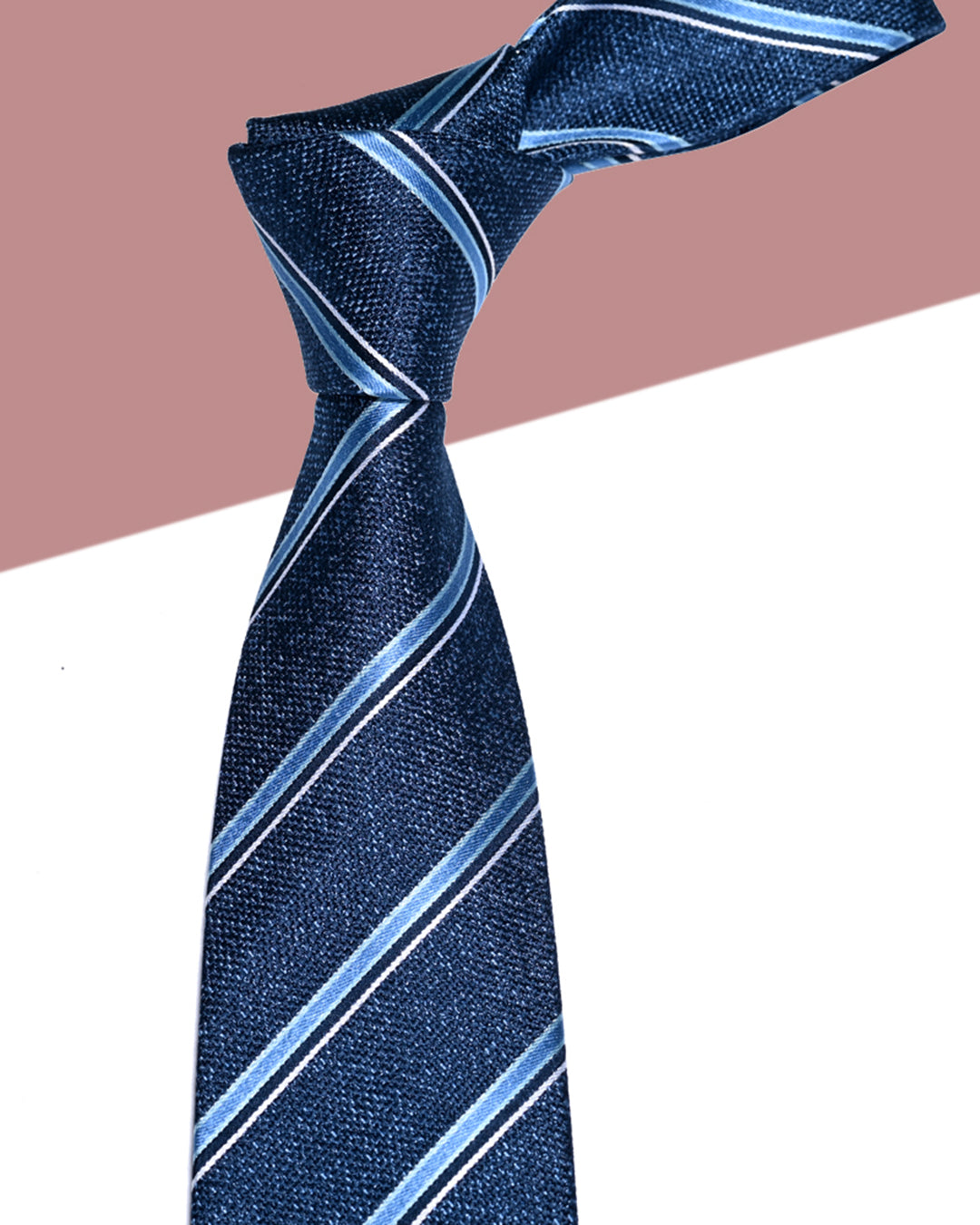 Quà Tặng Cao Cấp / Cà Vạt Lụa Gấm Hoa Văn Kẻ Chéo / Xanh Dương / 8cm x 145cm