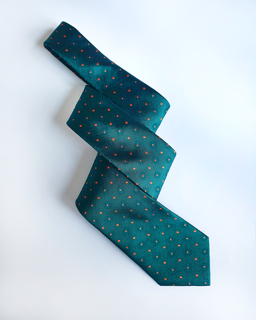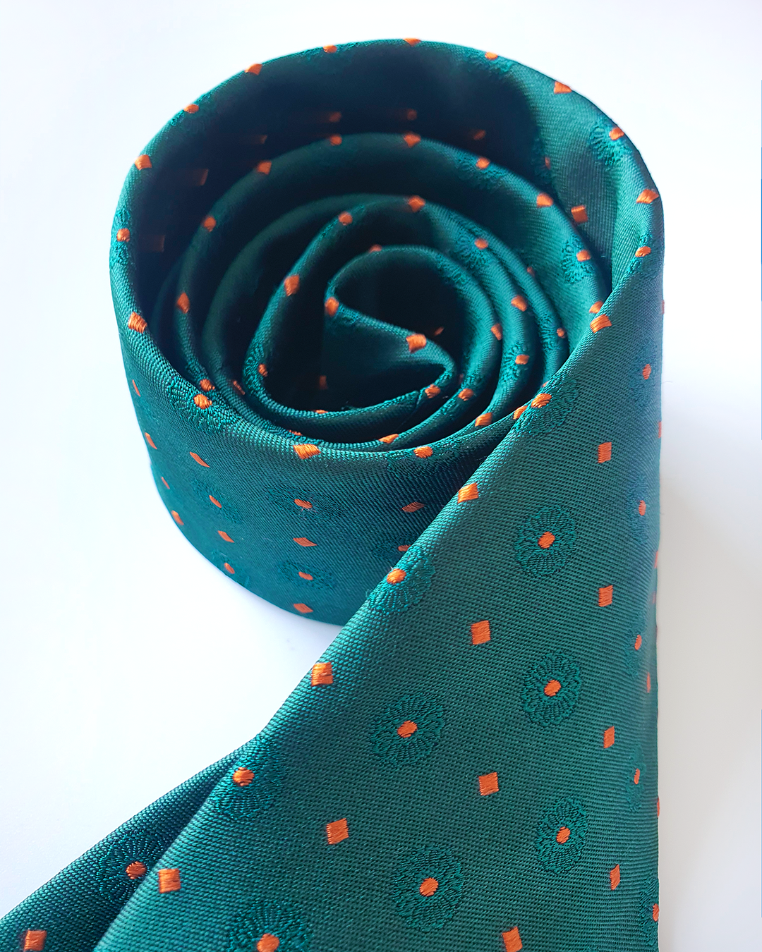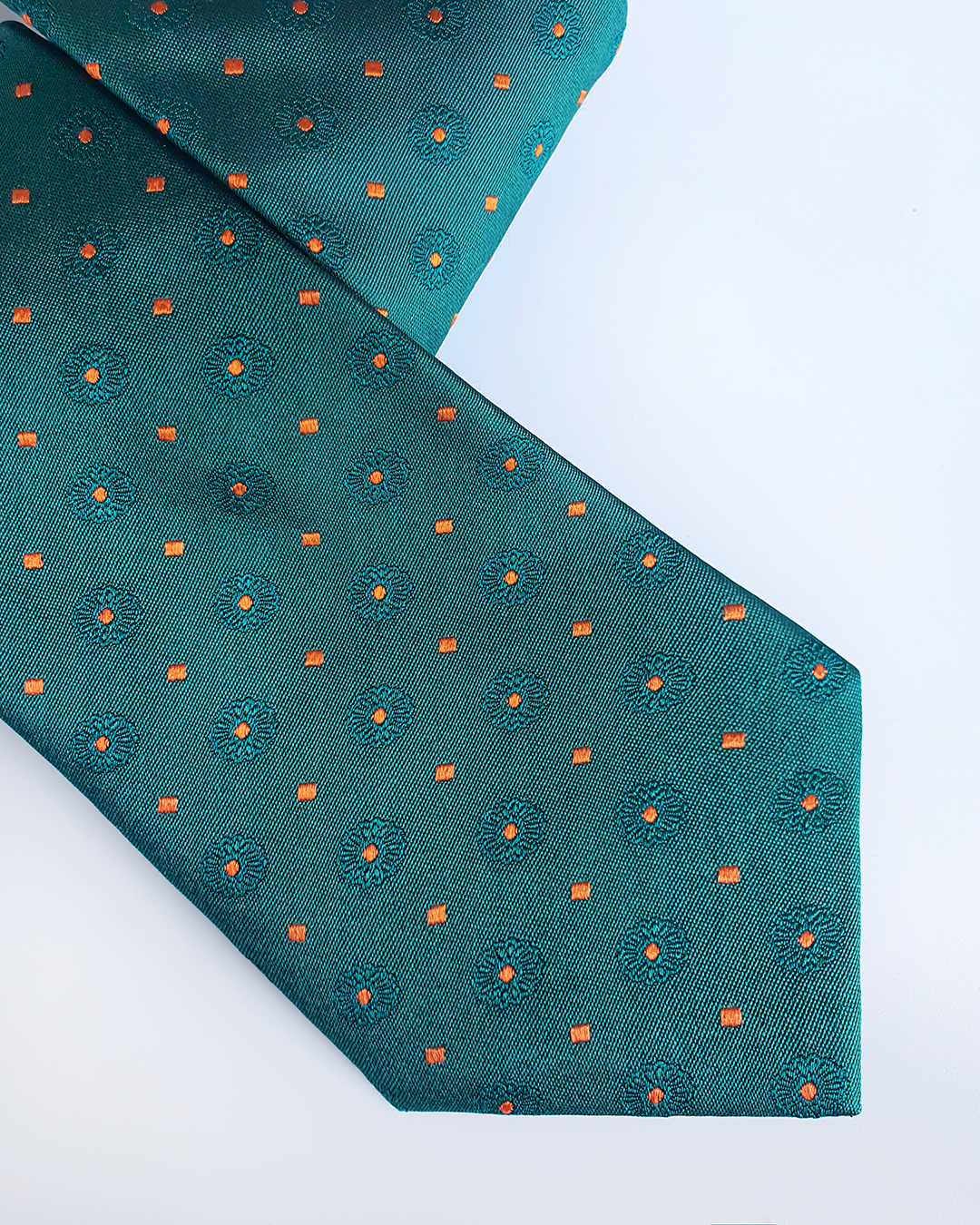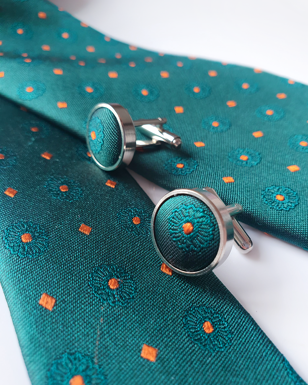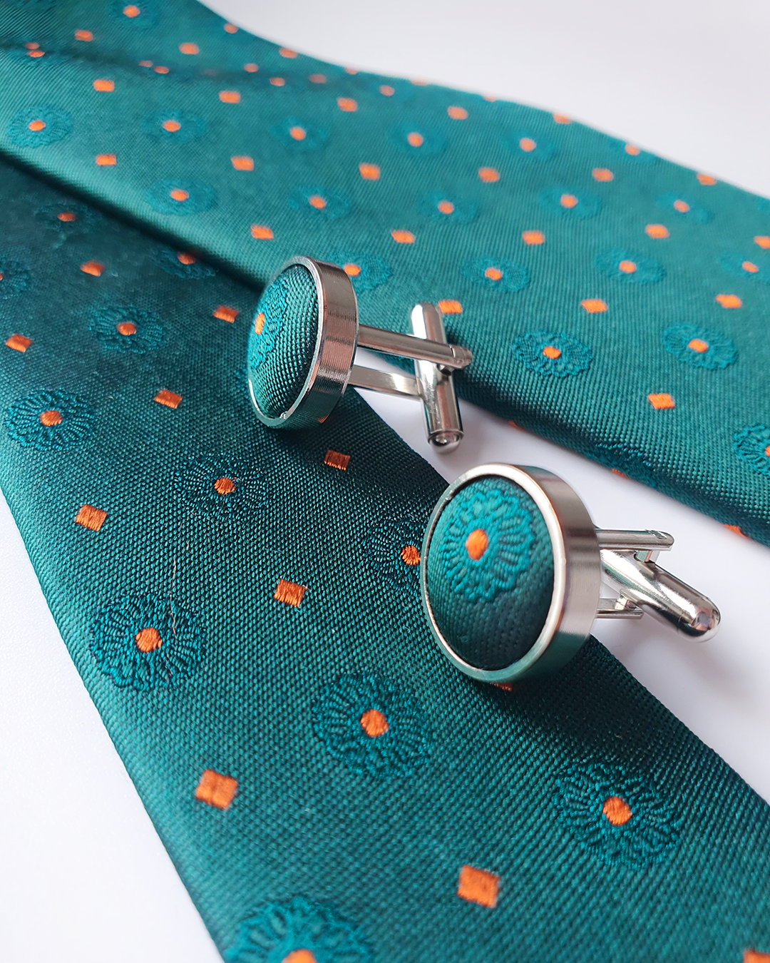 Quà Tặng Cao Cấp / Cà Vạt Lụa Gấm Hoa Văn Lục Bảo Kèm Đôi Khuy Măng Sét / 8cm x 145cm