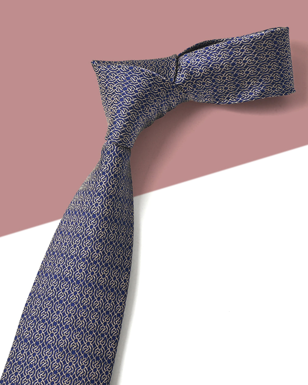 Quà Tặng Cao Cấp / Cà Vạt Lụa Gấm Hoa Văn Mắt Xích / Be / 8cm x 145cm