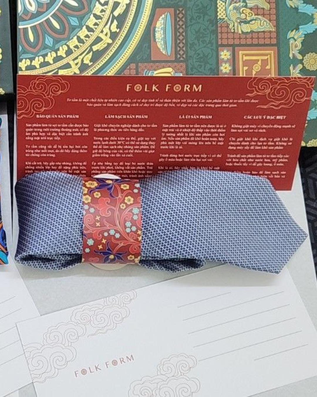 • + TẶNG 01 Thiệp đỏ hướng dẫn cách làm sạch và bảo quản khăn lụa đúng cách