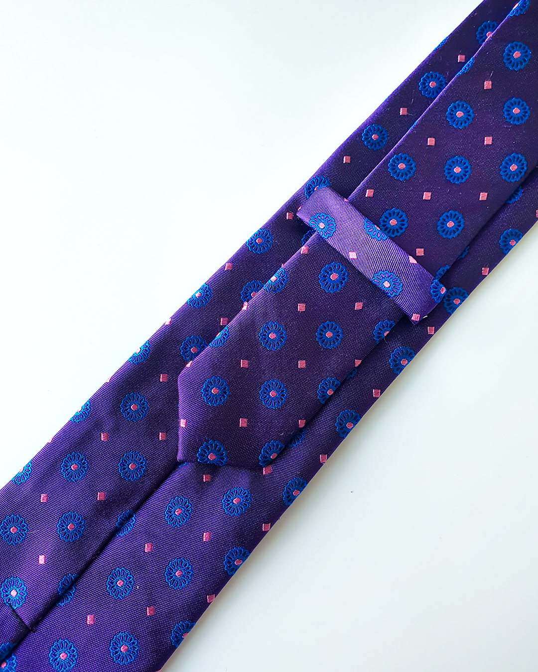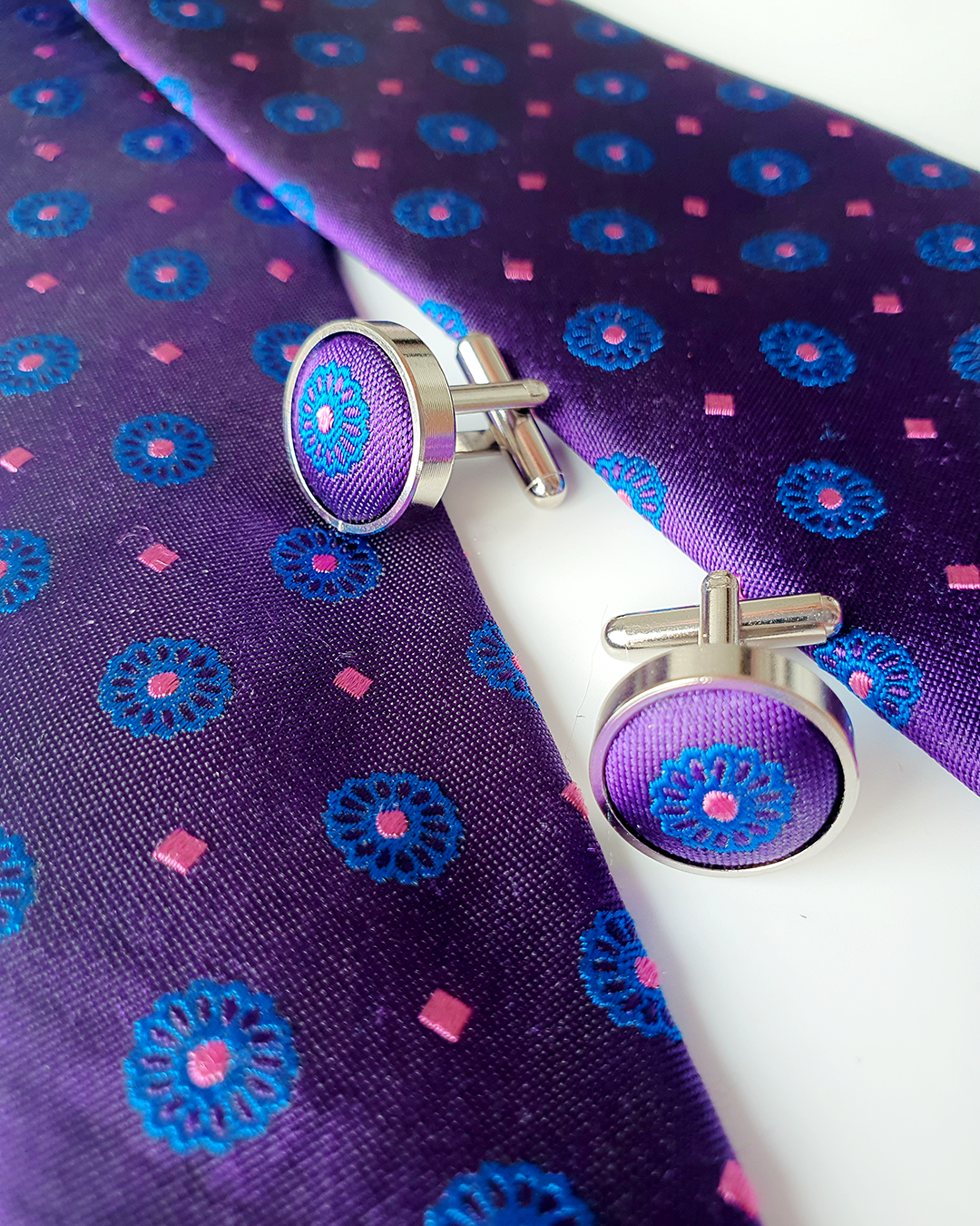 Quà Tặng Cao Cấp / Cà Vạt Lụa Gấm Hoa Văn Tử Liên Kèm Đôi Khuy Măng Sét / 8cm x 145cm