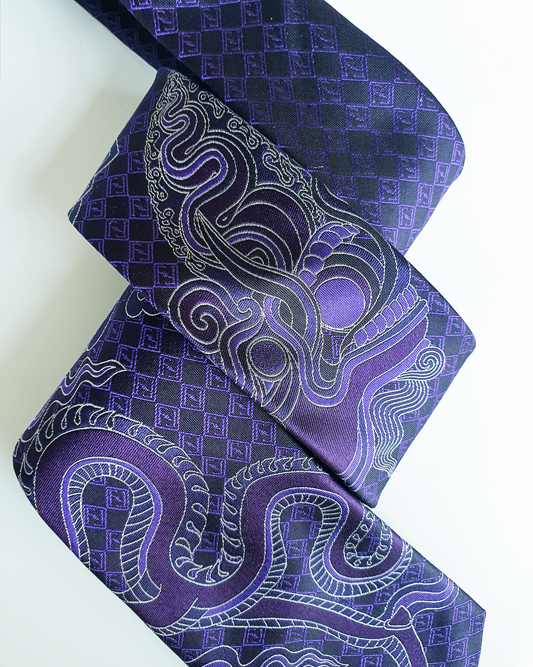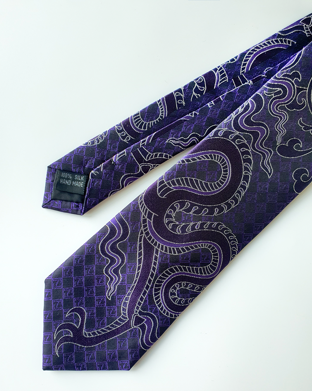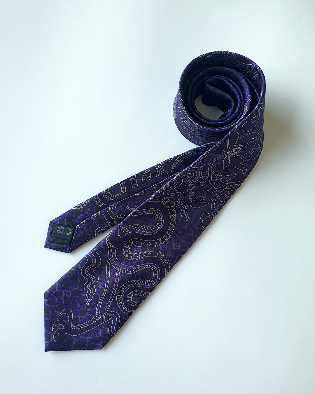 Quà Tặng Cao Cấp / Cà Vạt Lụa Gấm Hoa Văn Tử Long / 8cm x 145cm