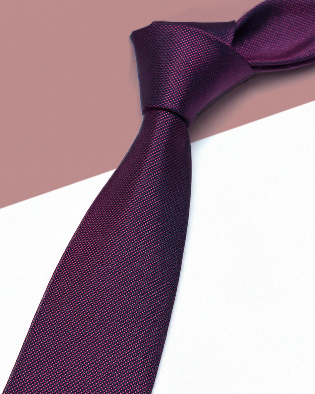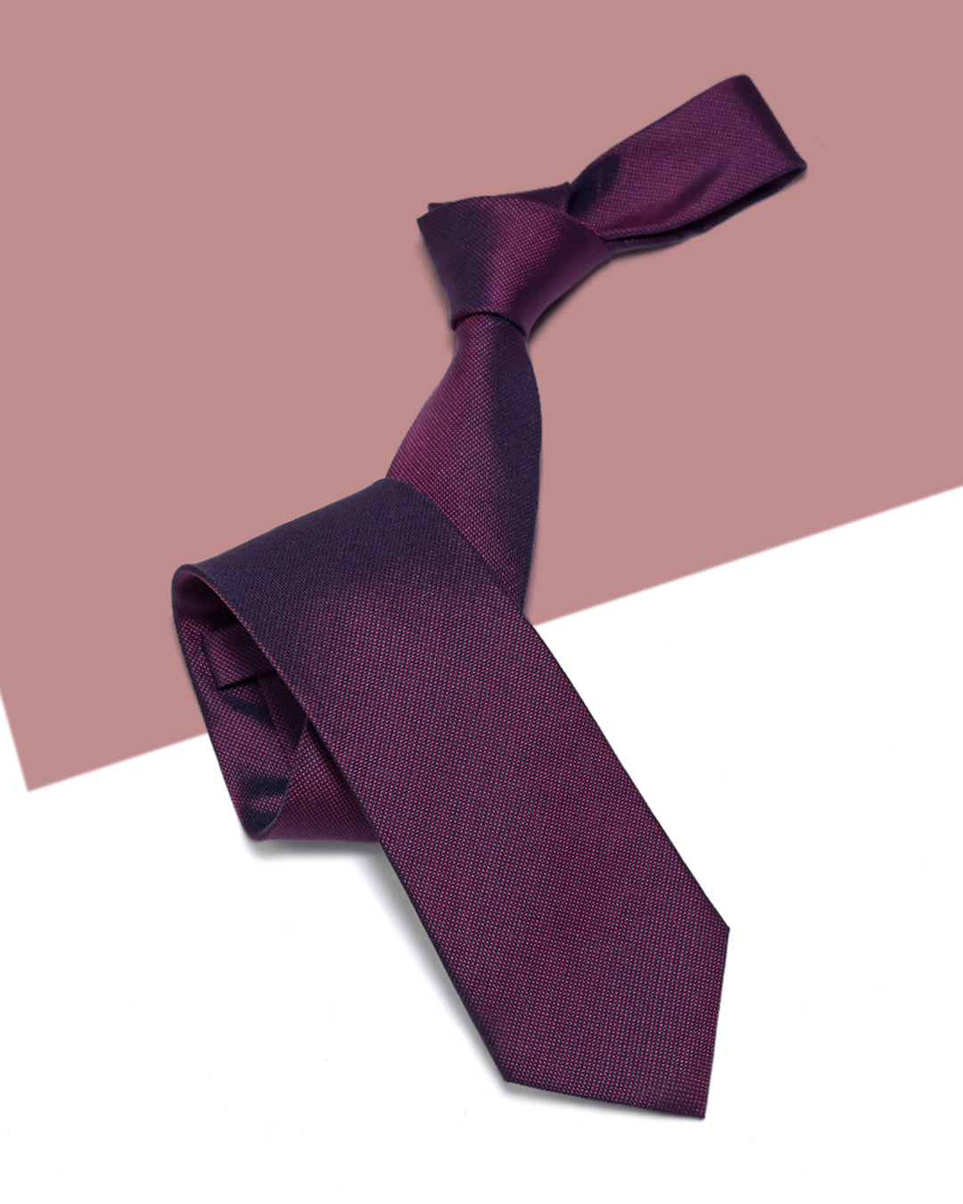 Quà Tặng Cao Cấp / Cà Vạt Lụa Gấm Hoa Văn Vi Chấm / Đỏ Tía / 8cm x 145cm
