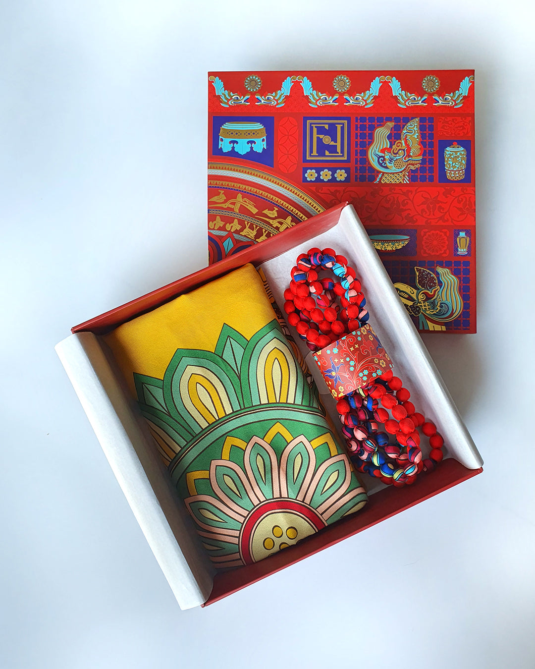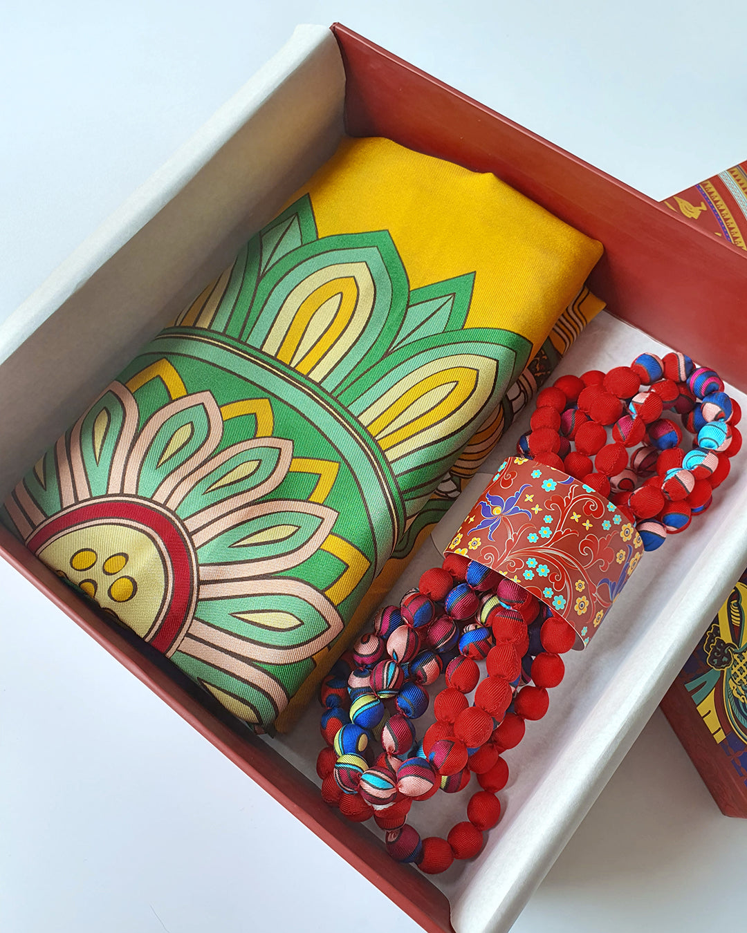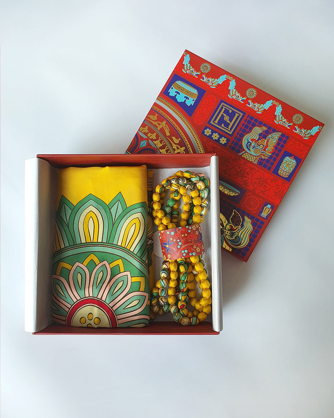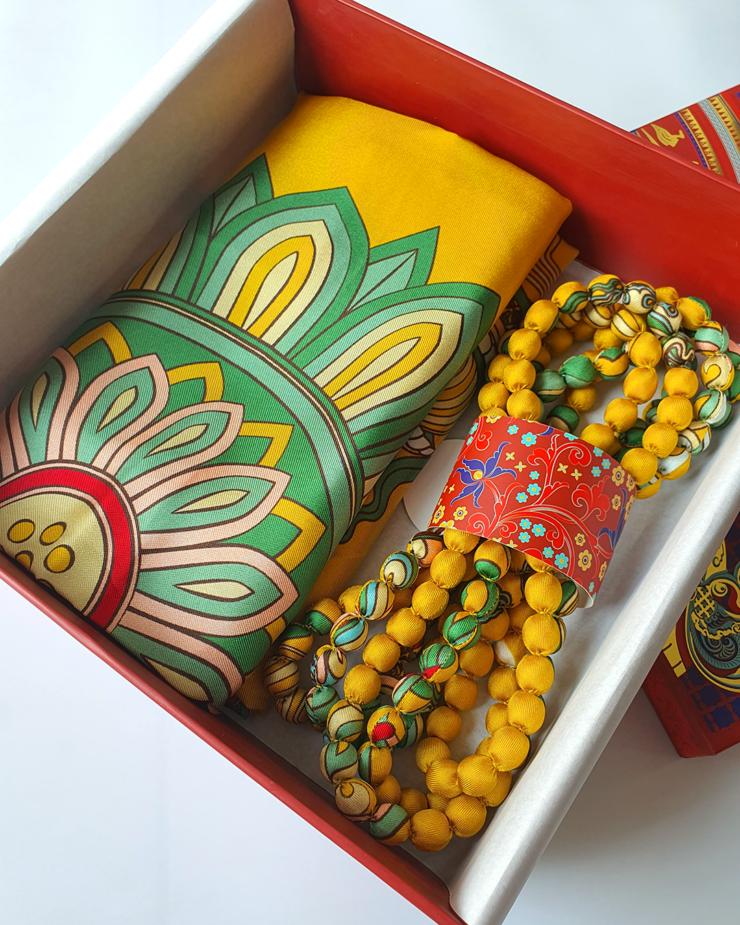 Khi bạn chọn một món quà chính (khăn lụa, cà vạt, sản phẩm thời trang...), chúng tôi sẽ thay bạn gửi gắm thêm sự đủ đầy bằng cách thân mời bạn chọn trong kho vật phẩm những món quà đi cùng trong set quà, có thể là Cài khăn sừng thủ công, Khăn, Vòng, Thời trang Linen, Thiệp theo thiết kế, Câu chuyện sản phẩm... hoặc những vật phẩm tinh tế khác.