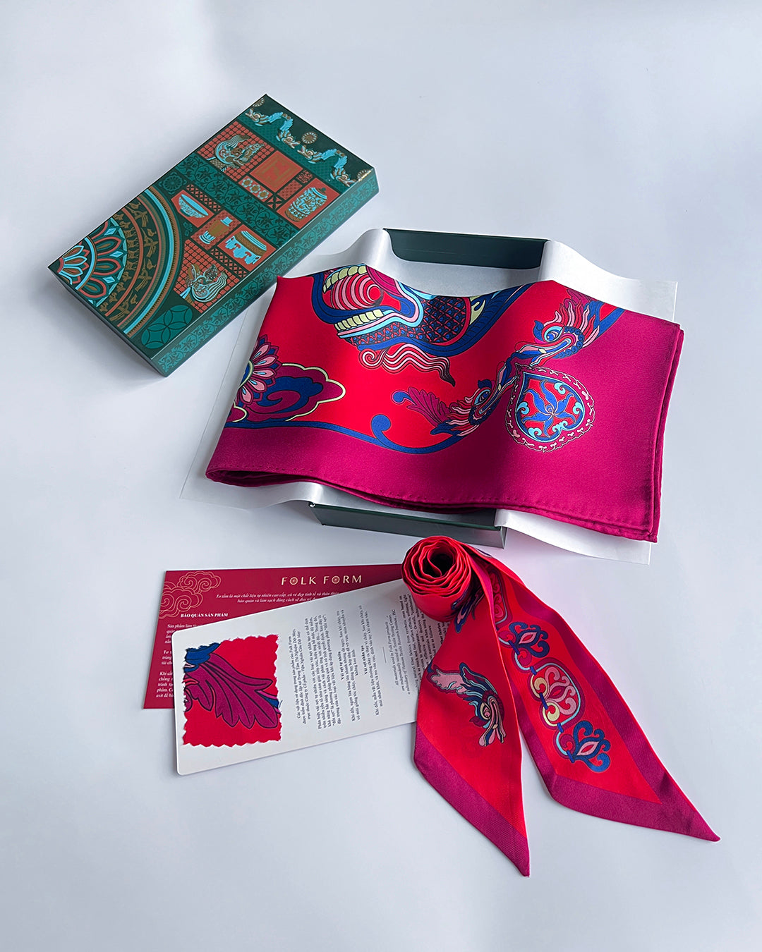 • + TẶNG 01 Thiệp đỏ hướng dẫn cách làm sạch và bảo quản khăn lụa đúng cách