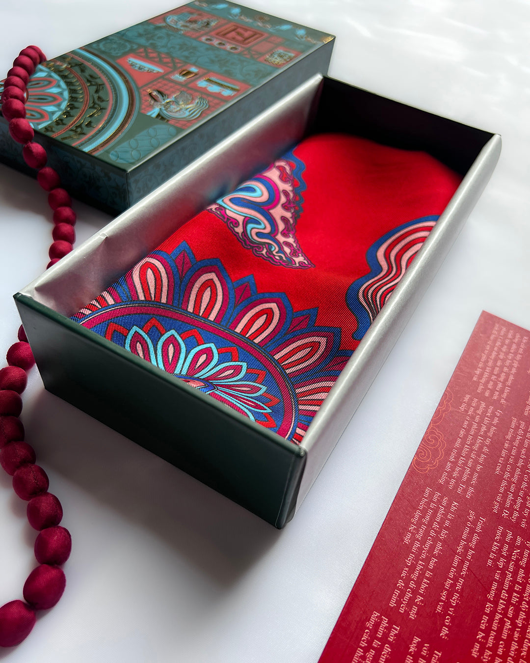 Quà Tặng Cao Cấp Tinh Vân / Khăn Lụa Vuông Hương Vân Long Mộng / Đỏ