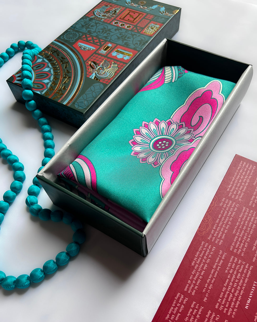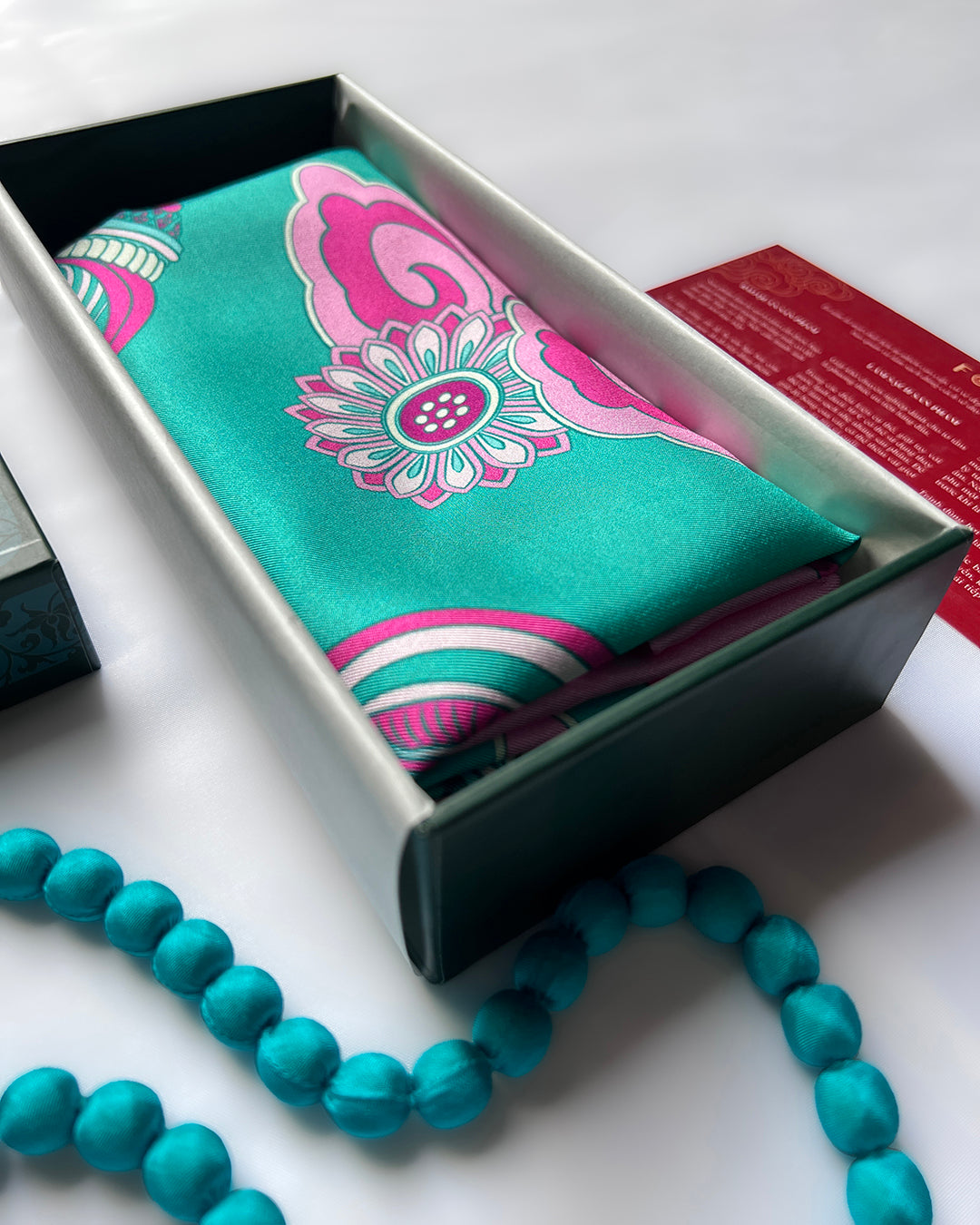 Quà Tặng Cao Cấp Tinh Vân / Khăn Lụa Vuông Hương Vân Long Mộng / Xanh Ngọc & Hồng