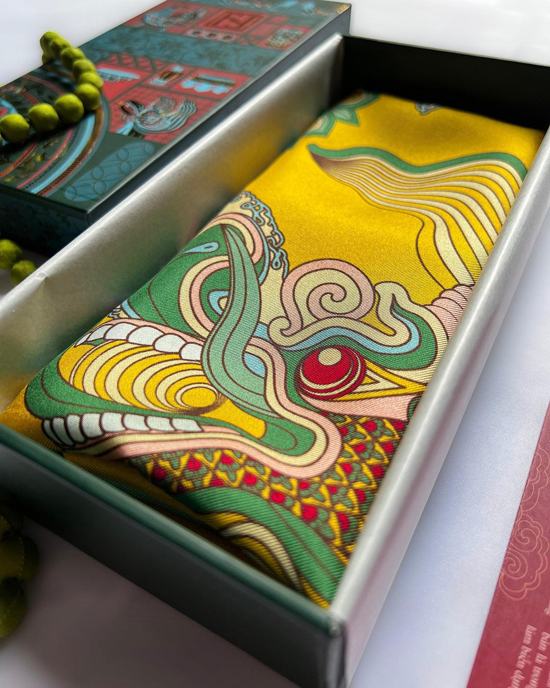 Quà Tặng Cao Cấp Tinh Vân / Khăn Lụa Vuông Mây Hoạ Long Ân / Vàng