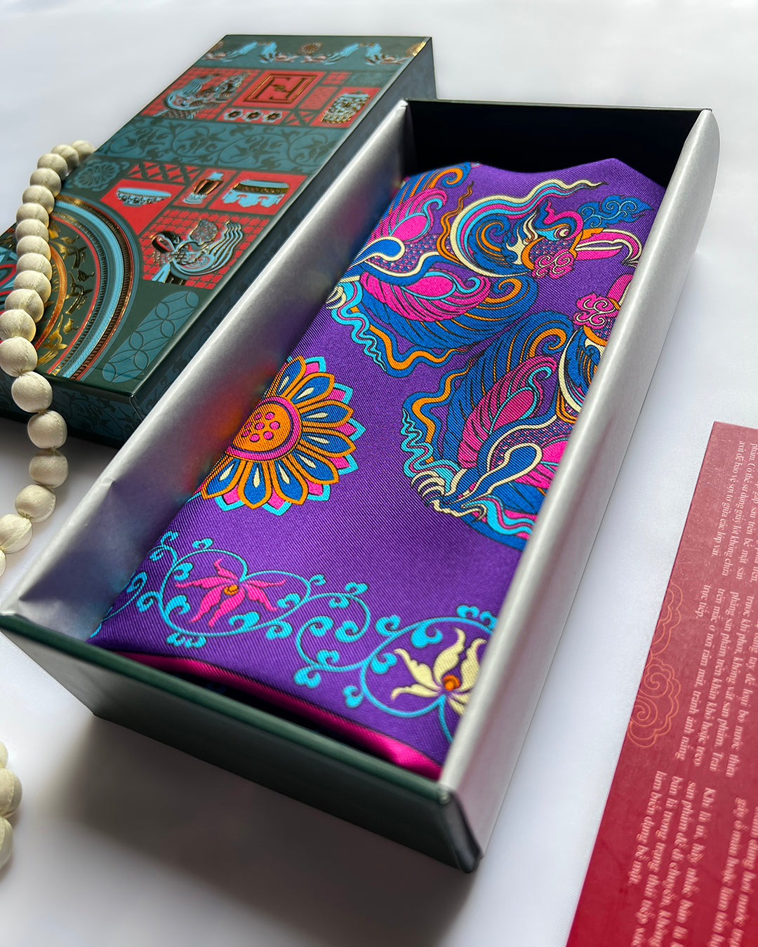 Quà Tặng Cao Cấp Tinh Vân / Khăn Lụa Vuông Phụng Vũ Vân Ca / Tím