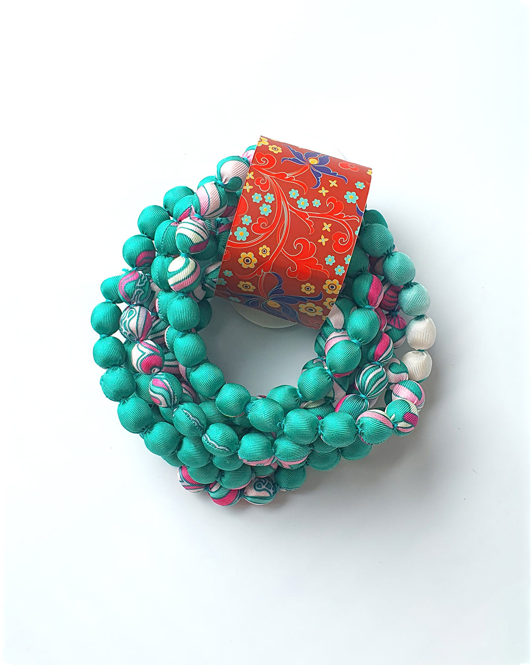 Lấy cảm hứng từ nét đẹp giao thoa giữa truyền thống và hiện đại, vòng hạt bọc lụa in hoạ tiết độc quyền của Folk Form mang hoà sắc rực rỡ, không những tạo điểm nhấn thanh lịch cho mọi phong cách mà còn là món quà ý nghĩa, tượng trưng cho sự trân trọng và yêu thương.