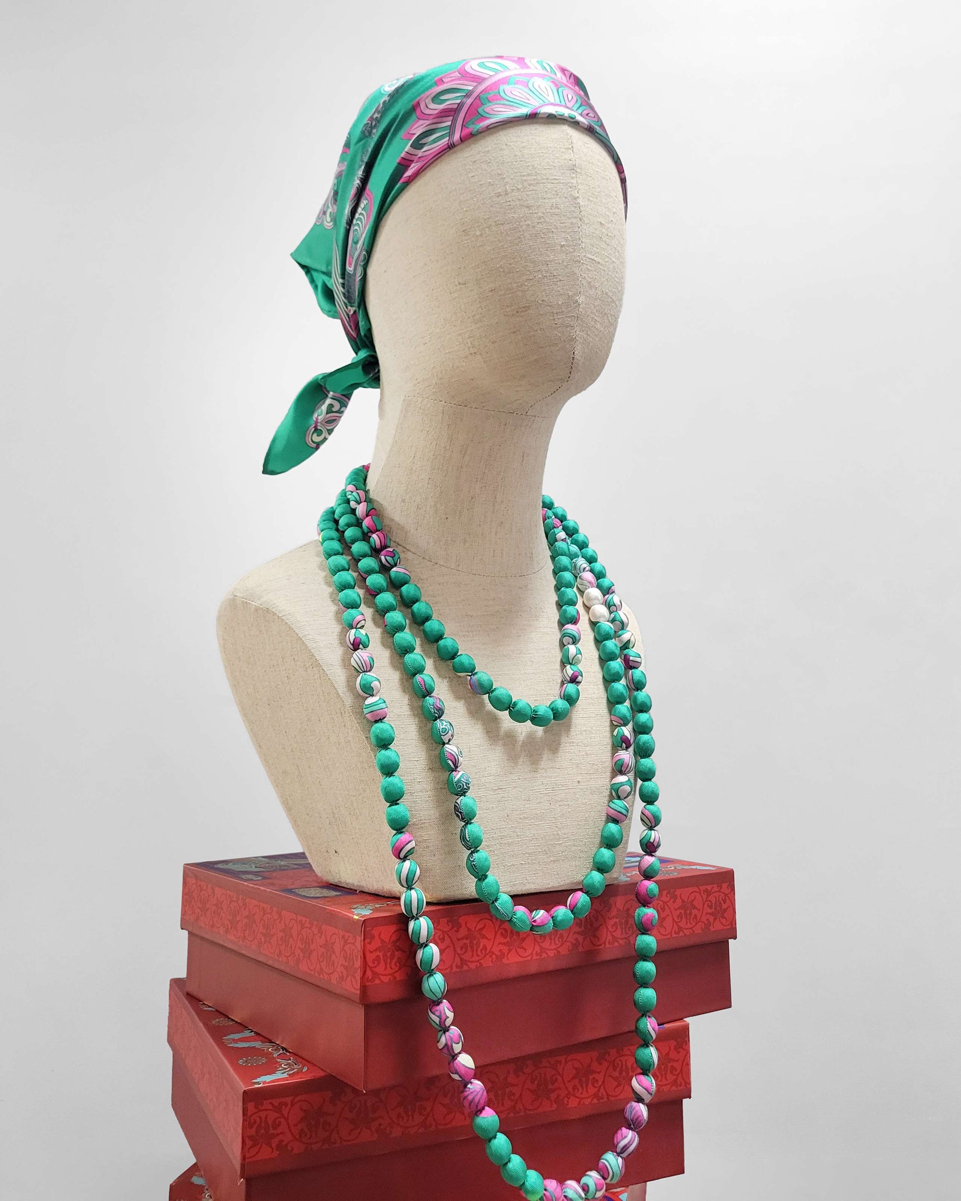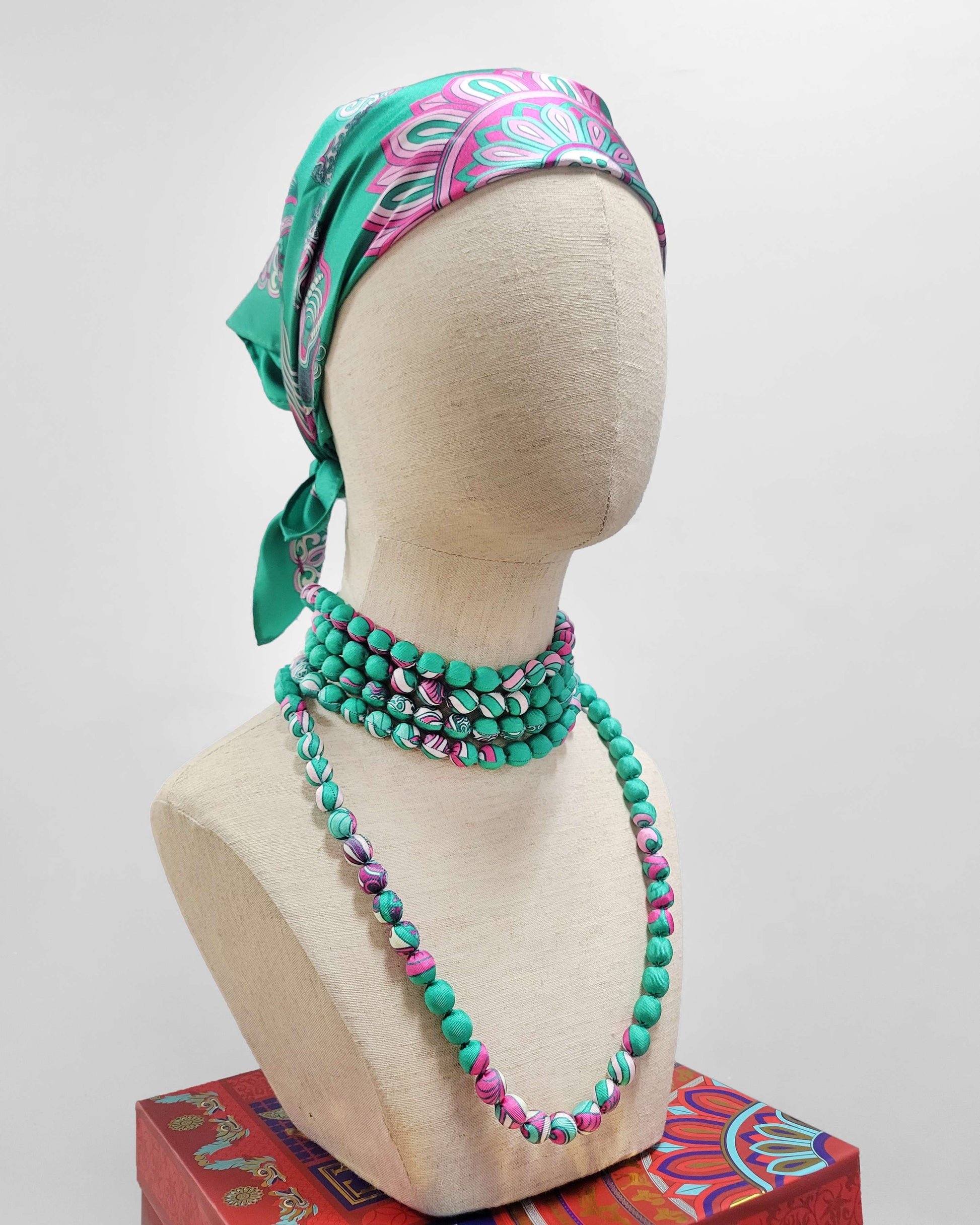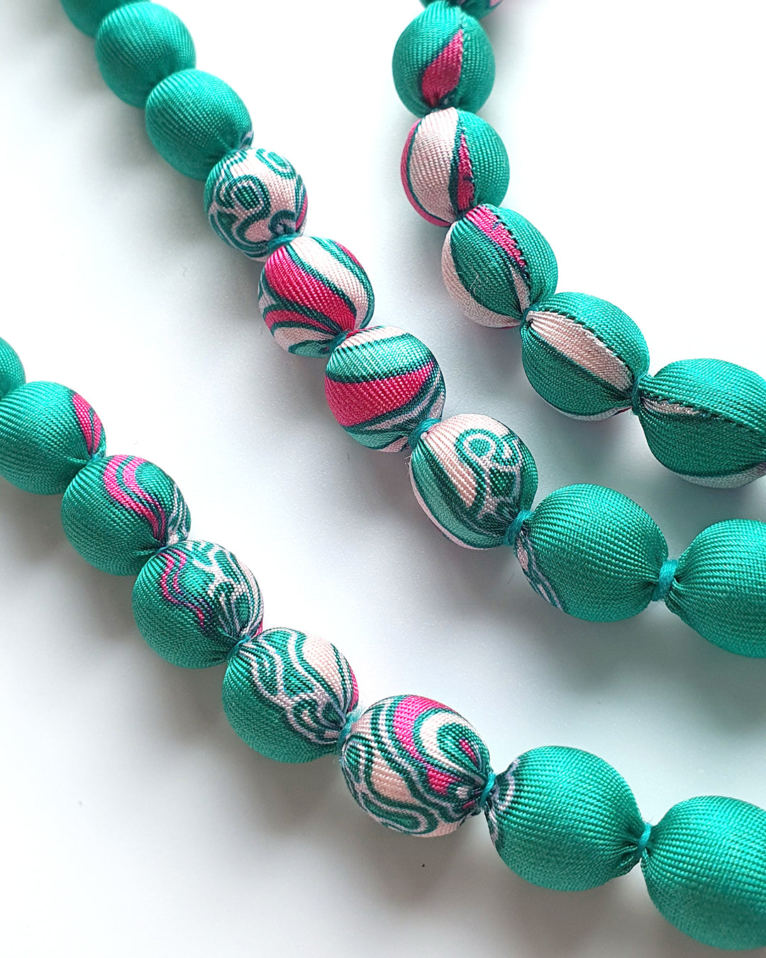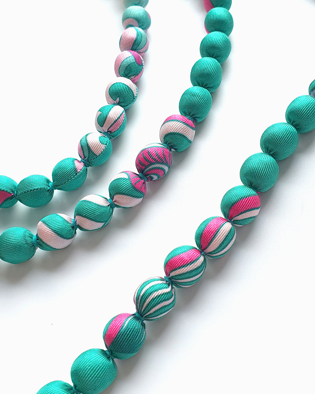 Vòng Hạt Bọc Lụa In Hoạ Tiết / Xanh Ngọc / 110cm